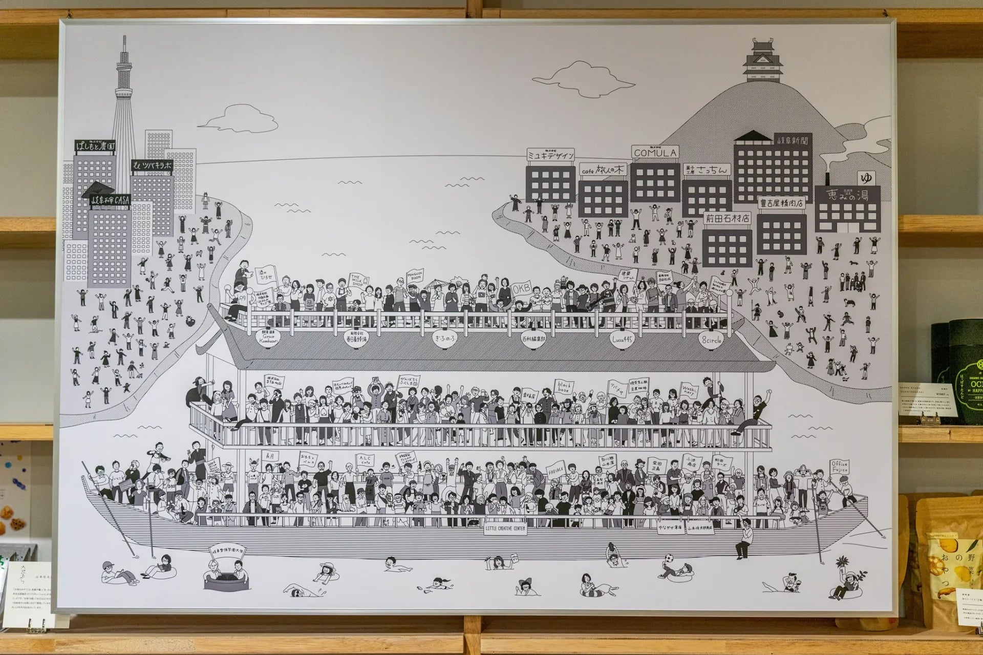 「みんなで一緒につくりあげた場所であること、また、今後も一緒につくっていく場所であることを表現していきたい」という思いから、店内に飾る「岐阜ホール」号のイラストに乗組員のみなさんの姿を描くことをリターンにしたところ、おかげさまで大きな反響をいただき、なんと432人もの乗組員のみなさんとともに、岐阜から東京へと出航することができました。