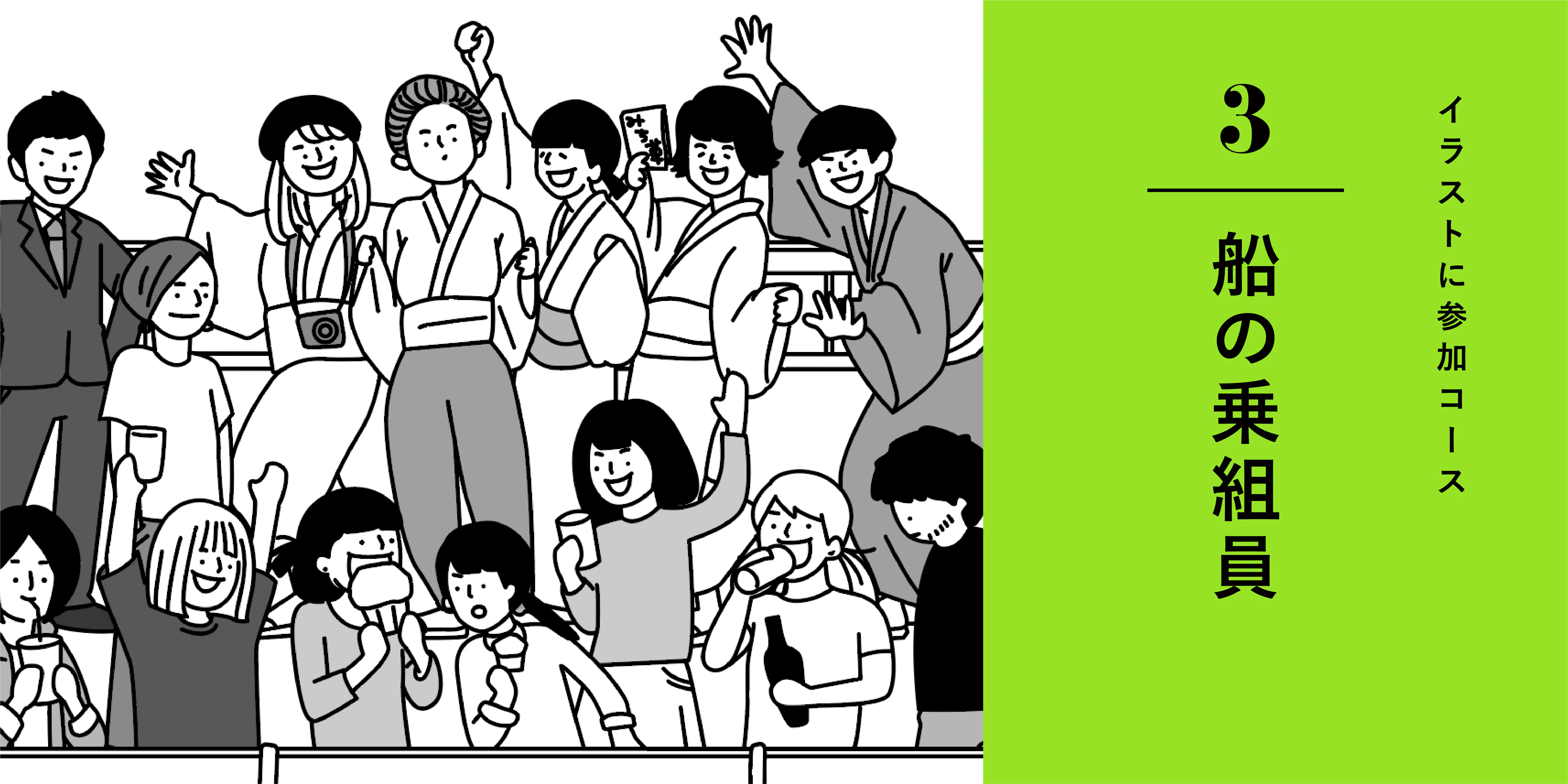そのため、今回のリターンでは、前回の船のイラストに【追加乗船】いただくという形で、新たに乗組員のイラストを描き加えさせていただきます。