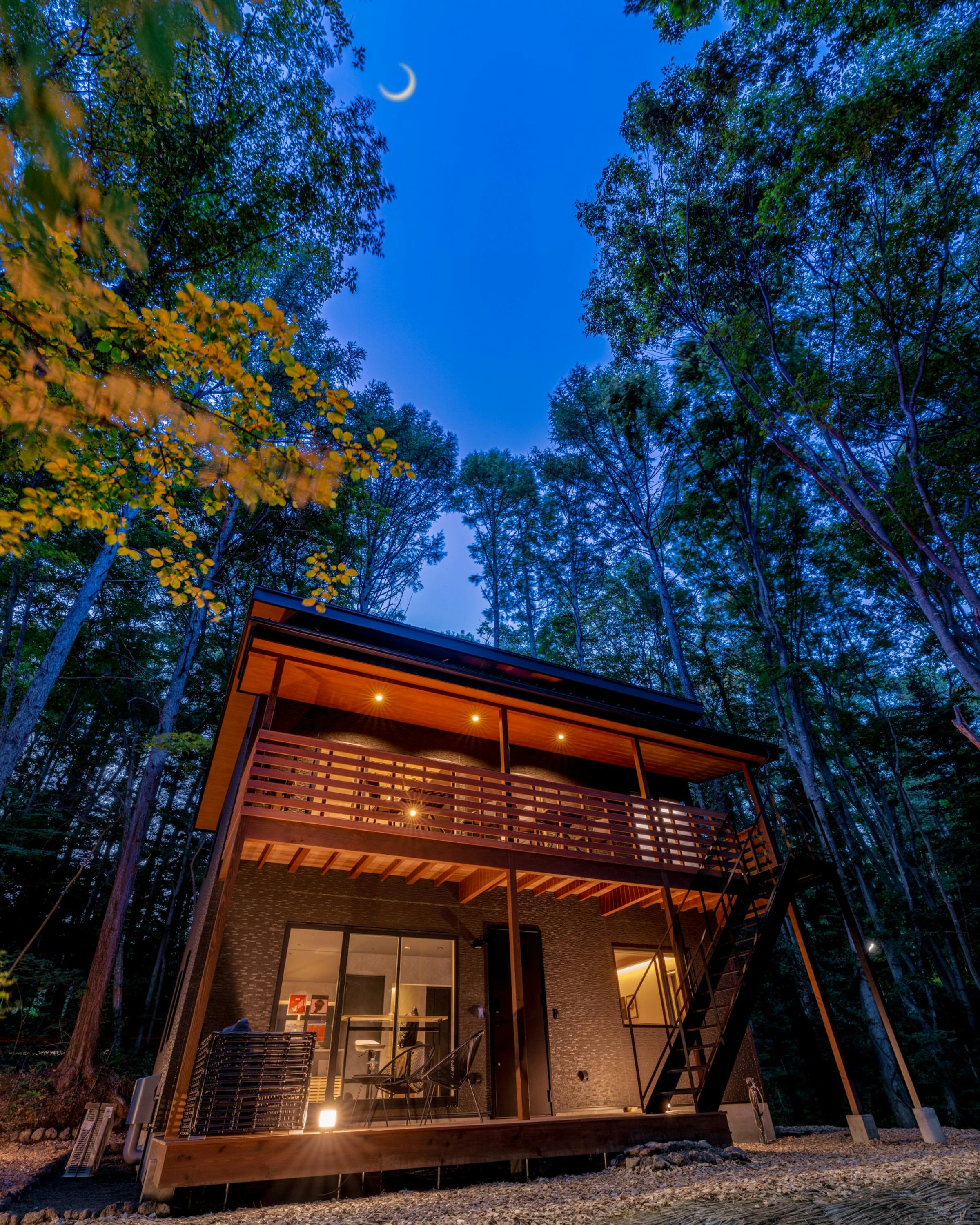 ツキミチルの外観イメージ。自然の中にひっそりと佇むまさに"隠れ家"です。