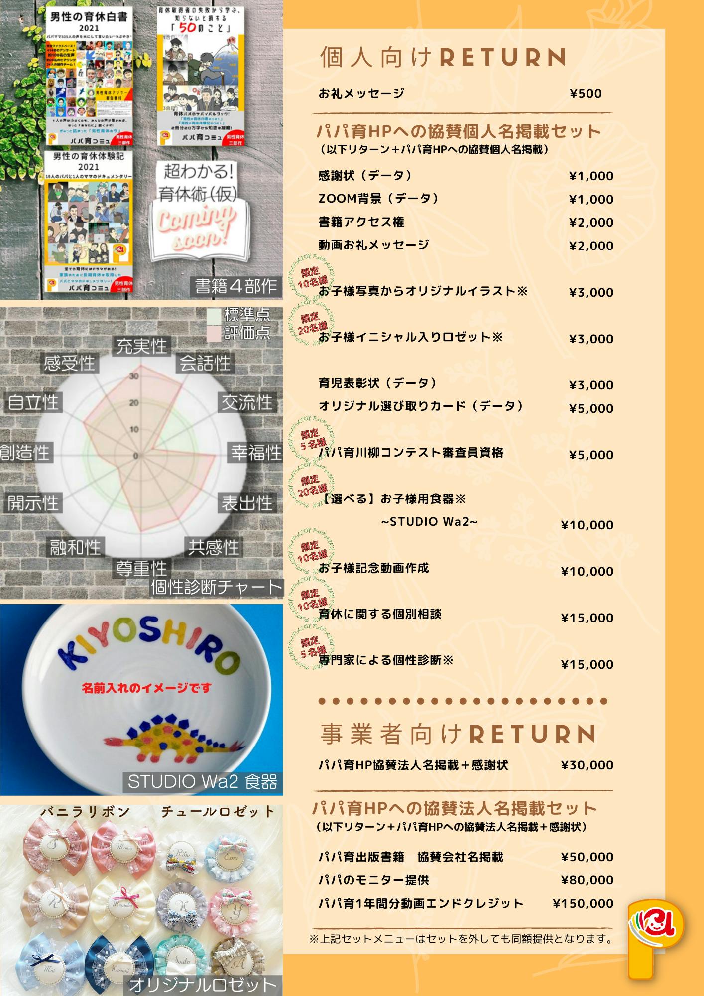 各リターンの詳細はリターン購入欄の説明文をご参照ください。