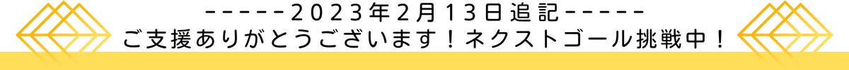 達成を目指してがんばります!!最後まで応援いただけると幸いです。