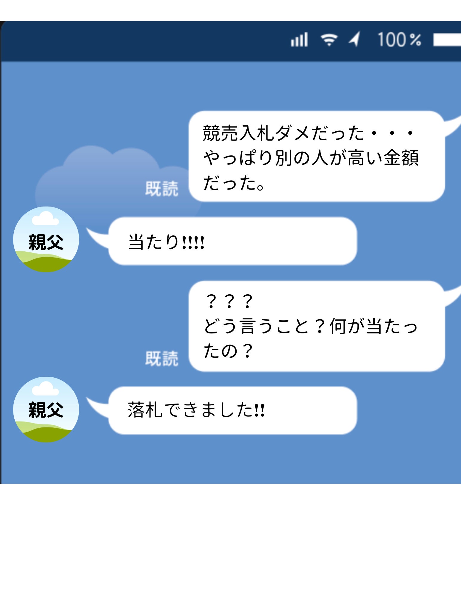 事前に競売入札する話を父親にもしていてたのですが、まさかの父親も入札に参加しているとは知らず、今年一番のサプライズでした。父親曰く、「自分が入札する金額以上で落札されそうって思ったから、自分も参加した。」とその後、教えてくれました。