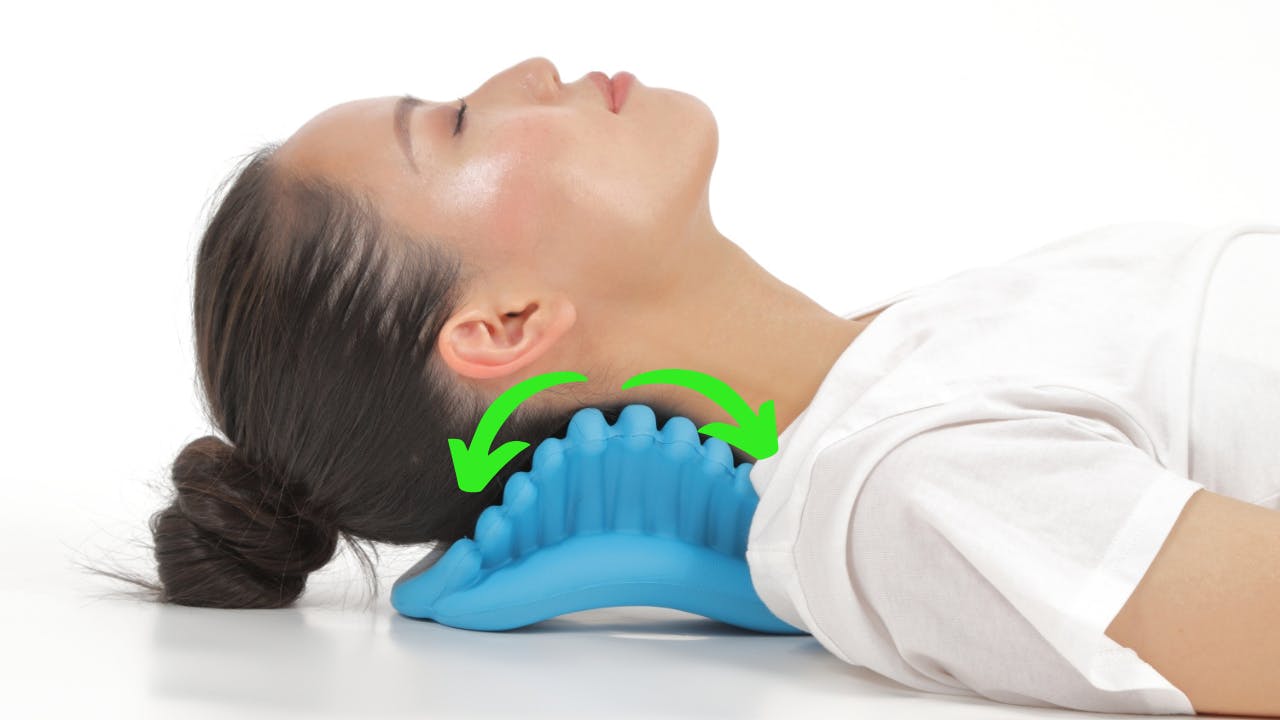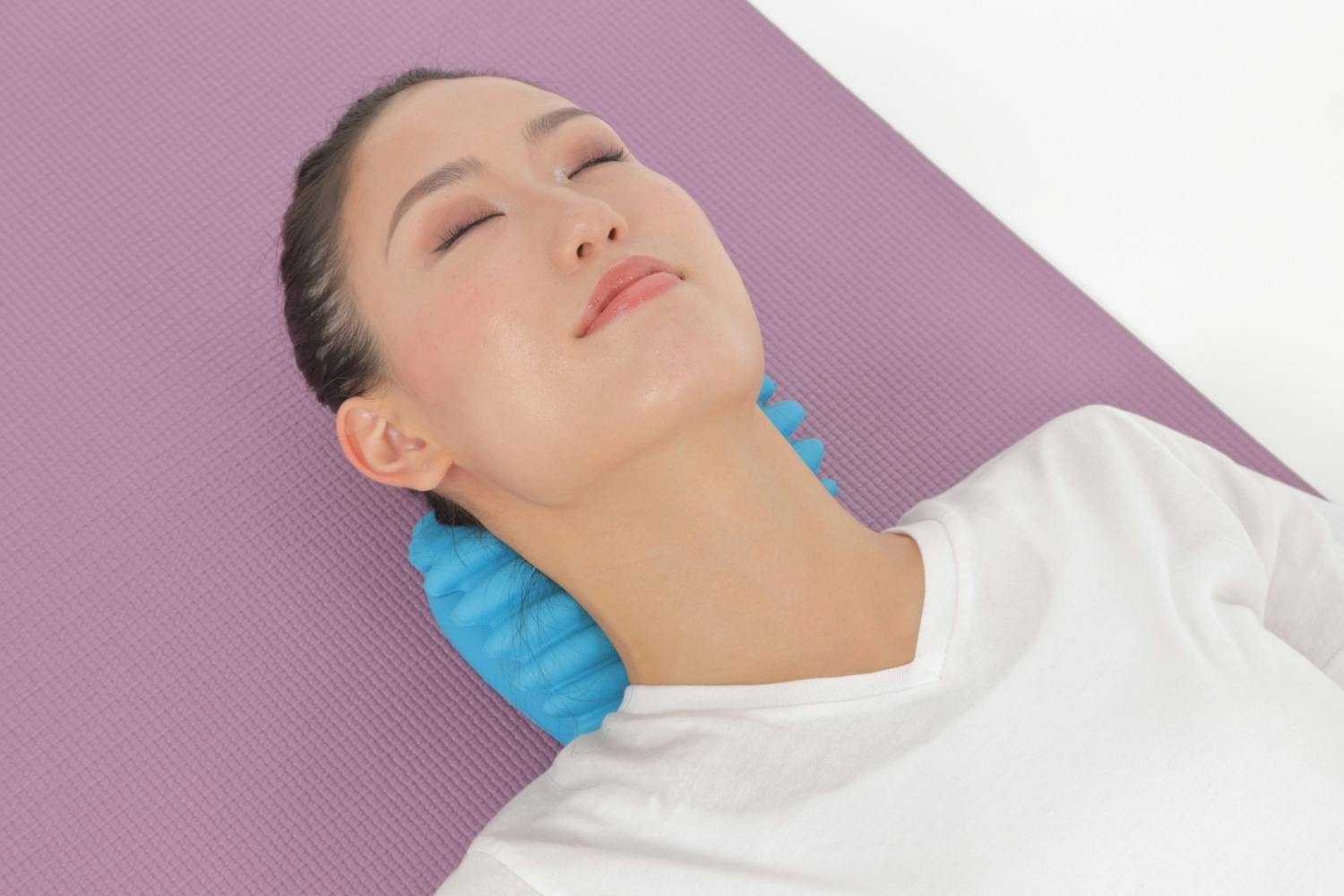 自分の頭の重さで自然に指圧を行い、筋肉のこりをほぐします。