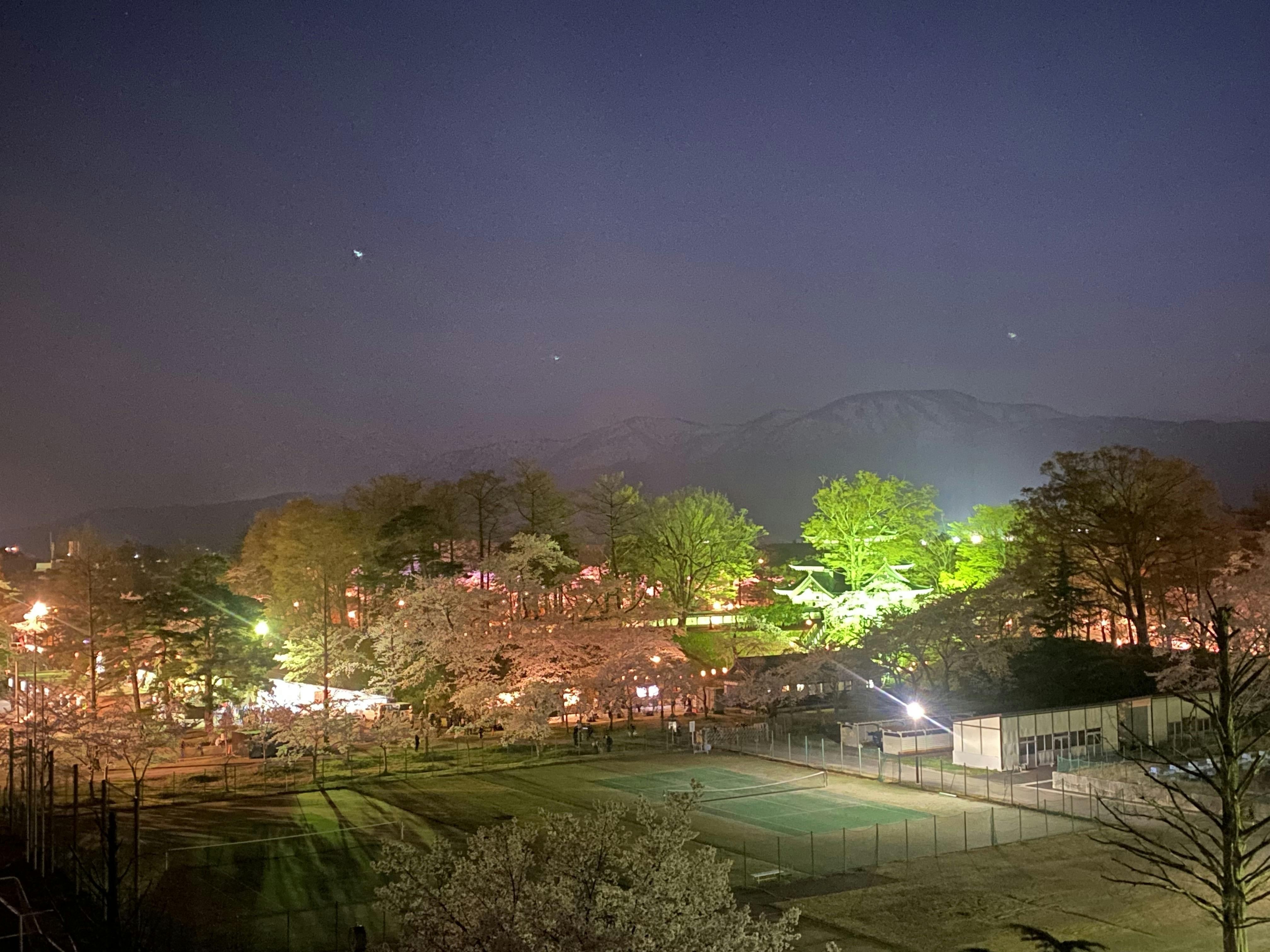高田城周辺は高田城址公園となっており、約4000本の桜が咲き競い、観桜会では約3000個のぼんぼりに照らされます。その美しさは上野の恩賜公園、弘前城公園とともに日本三大夜桜の一つに数えられています。
