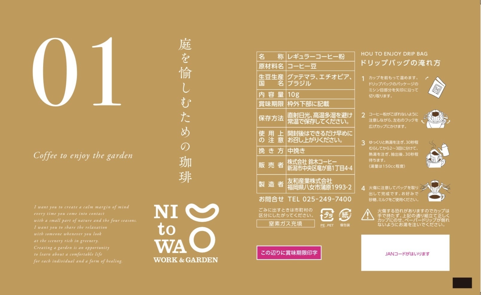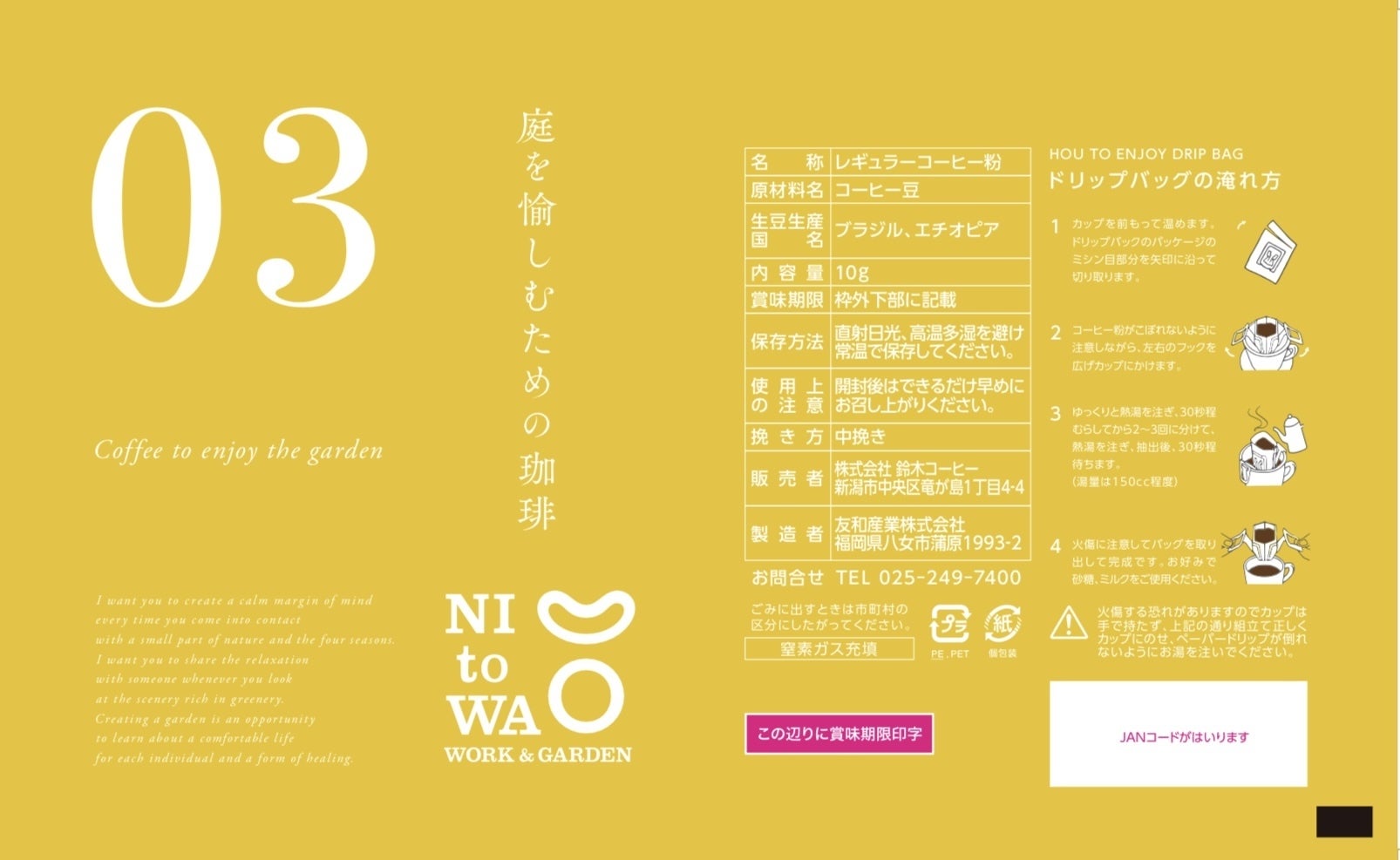 庭をシェアする会員制コワーキングスペース【NI to WA】のために製品化したコーヒーは、いつしか庭の愉しみをまだ知らない人にこそ届けたいものに変わっていきました。