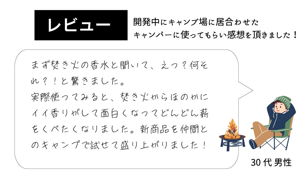 業界初!簡単にいつもの焚き火がグレードアップ!? 今までにない焚き火を楽しむ「焚き火の香水」デビュー!