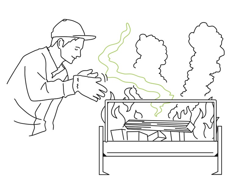 薪を投入すれば、その直後より煙とともに「いい香り〜」が漂ってきます。この最初に漂う香り「トップノート」を存分に楽しみましょう。