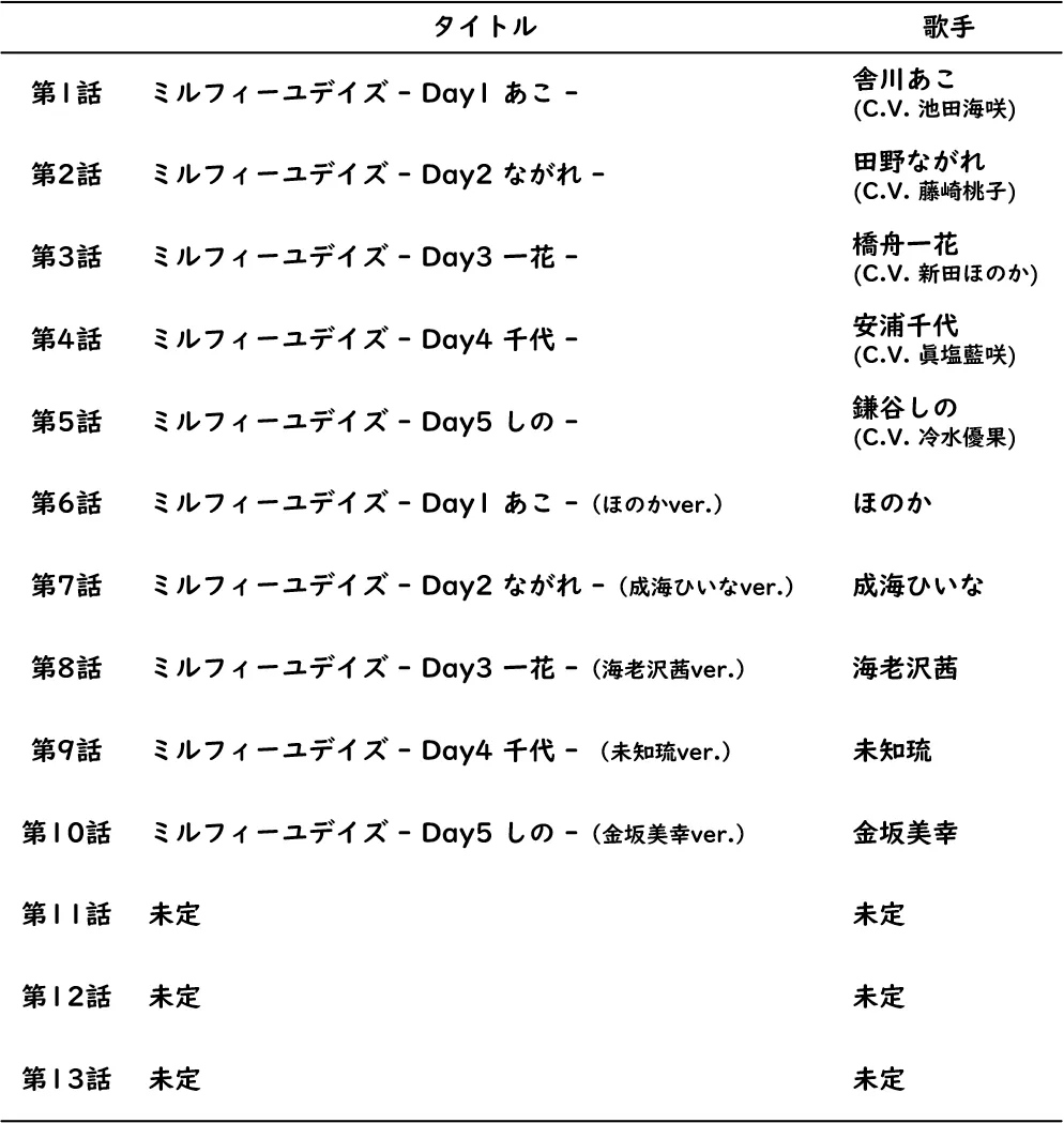制作内容C. 主題歌「ミルフィーユデイズ」中学生ver.(全5曲)制作