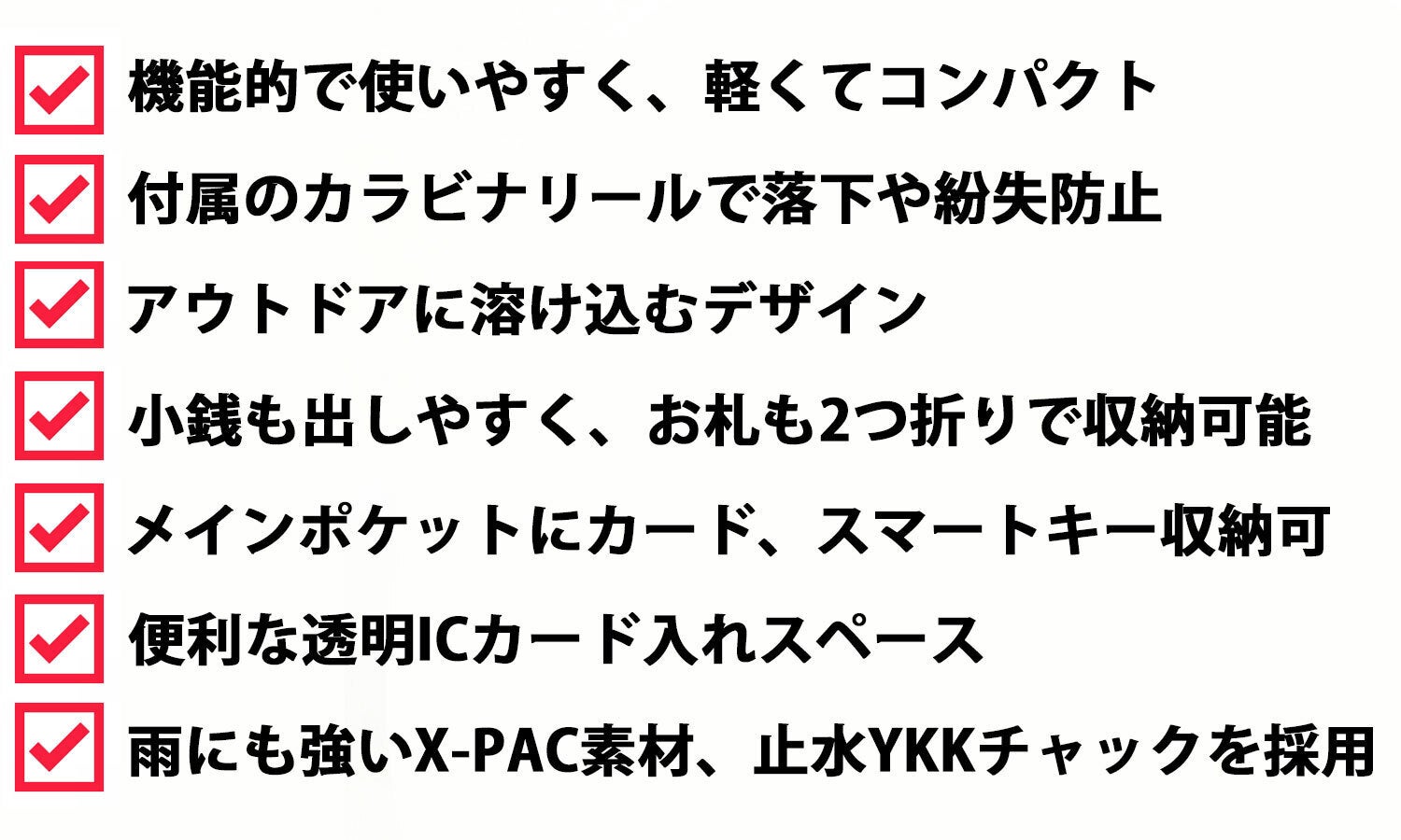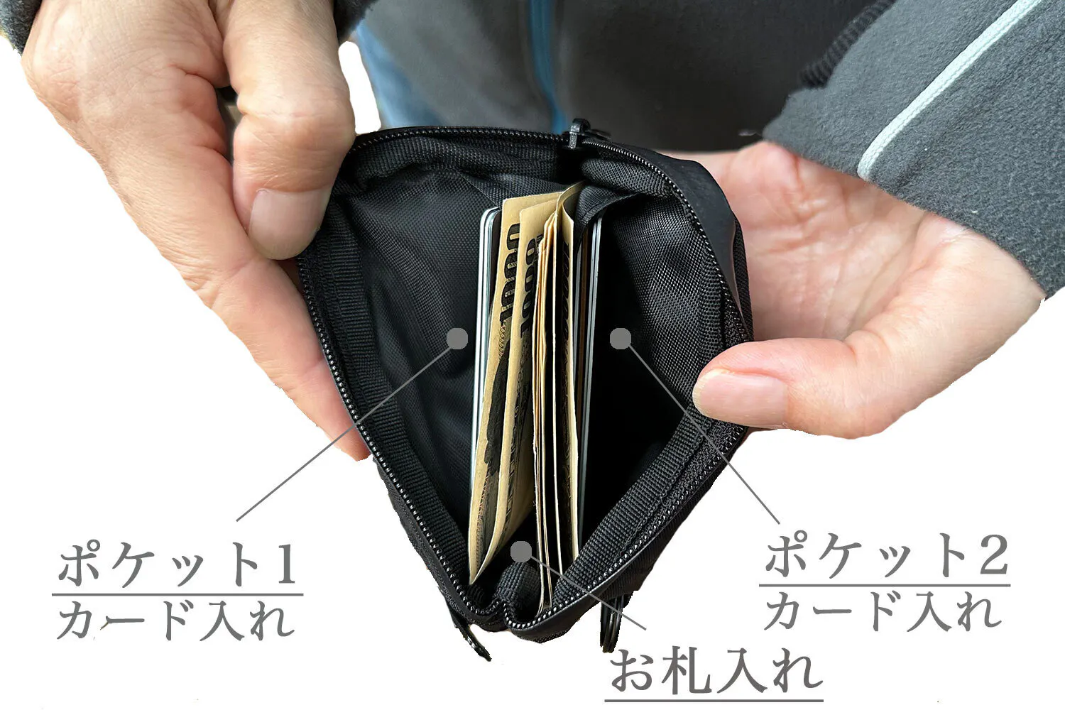 登山やキャンプで使う財布を探していましたが、サイズがしっくりこなかったり、デザインが今ひとつだったり、お札が4つ折りだったりとなかなか納得する物が見つかりません。