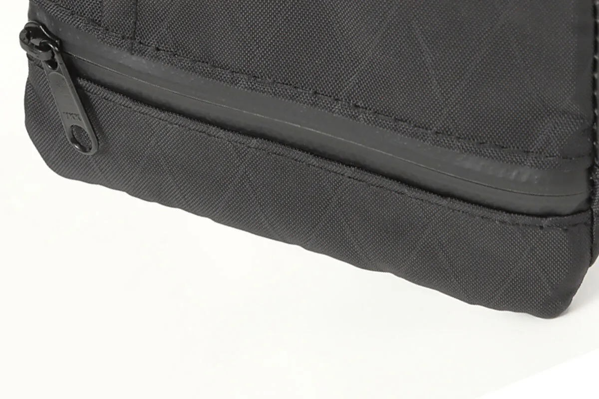 防水性と強度を向上させるために特殊な3層構造で構成されています。独特なダイヤ形状はX-PLYと呼ばれ、斜めの引き裂き強度を向上させています。止水YKKをチャックに採用。可能な限り水の侵入を防ぎます。