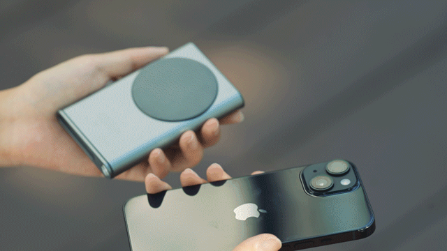 マグネット式ワイヤレス充電機能を備えた「MS2.0」は、磁石の力でチャージスポットにピタッと吸着。ポケットから取り出してMagSafe対応スマートフォンにサッと貼り付けるだけで、出先や移動中もワイヤレスでスマートに充電可能です。