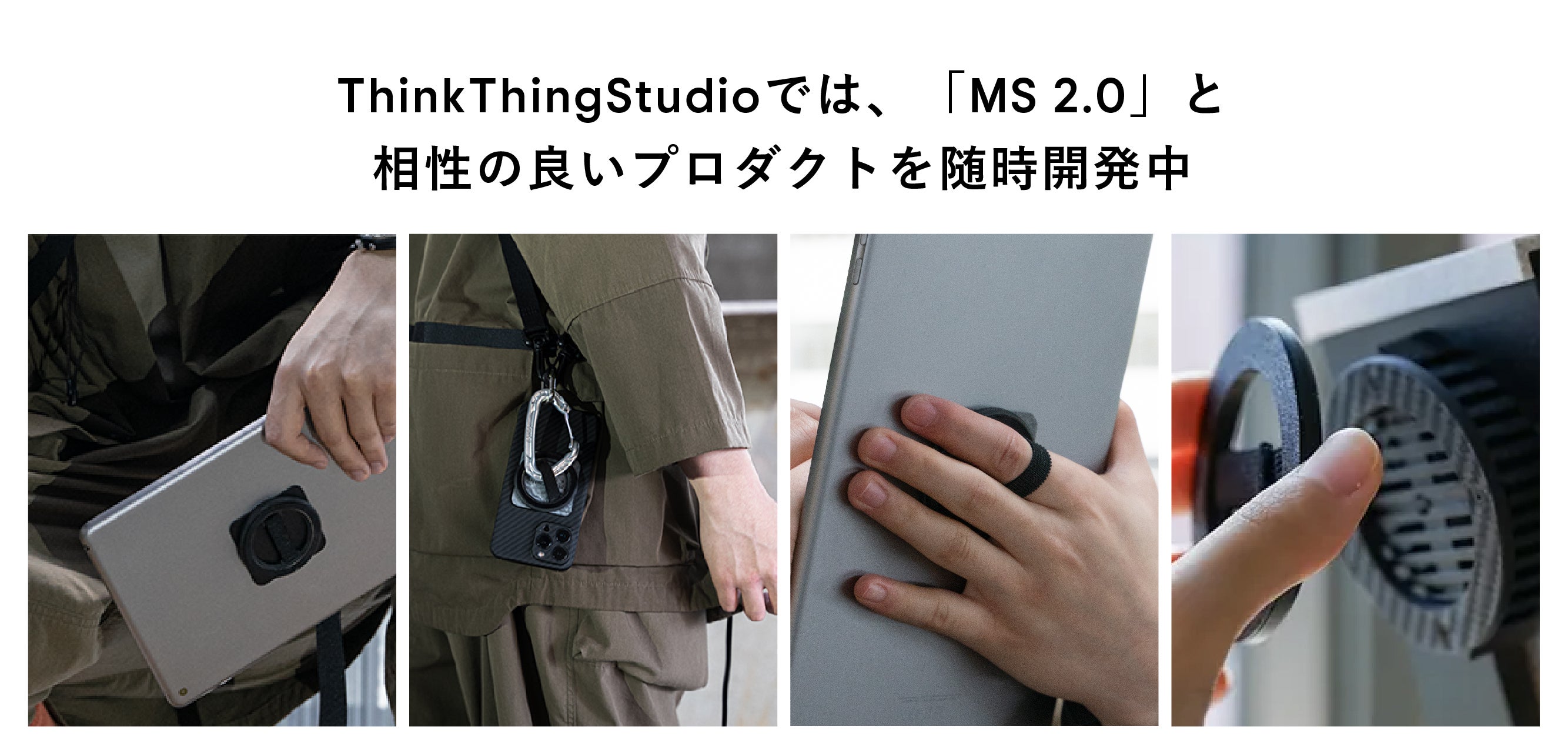 ThinkThing Studioでは、「MS1.0」と併用可能なアクセサリーや、「MagSafe3.0」を充電スタンド化できるアクセサリーなど、各アイテムとエコシステムを構築できる新製品を鋭意開発しています。
