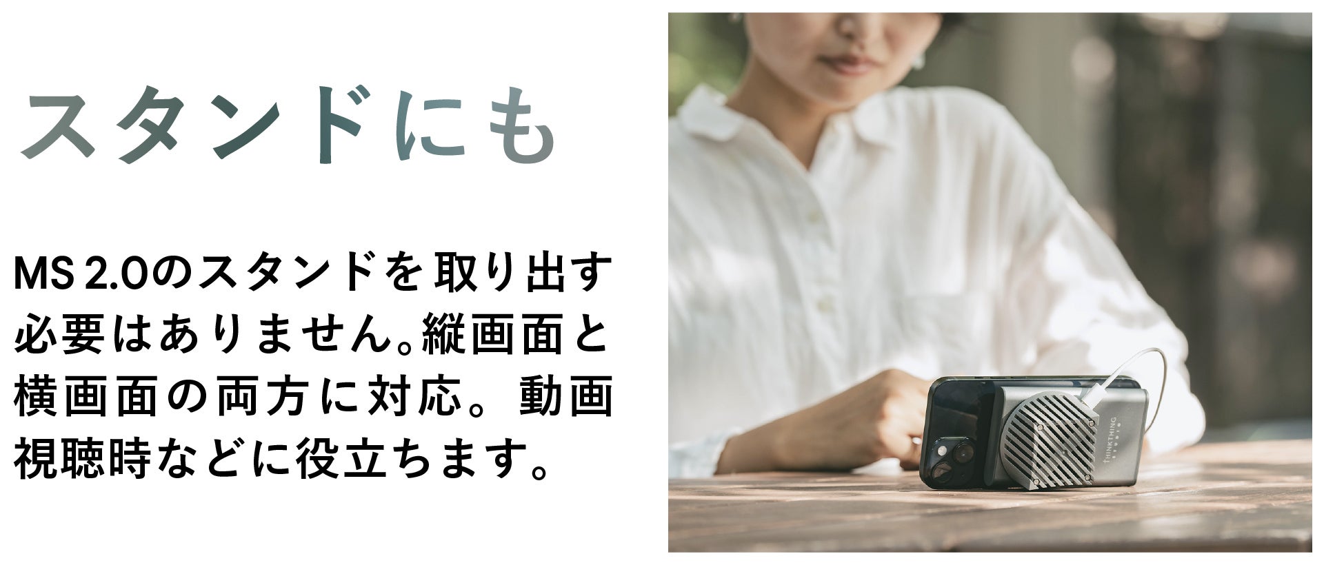 また「MS2.0」のデザインを邪魔しない形で設計された隠れスタンドは、動画視聴やスマホを立てかけておくスタンドとしても優秀です。