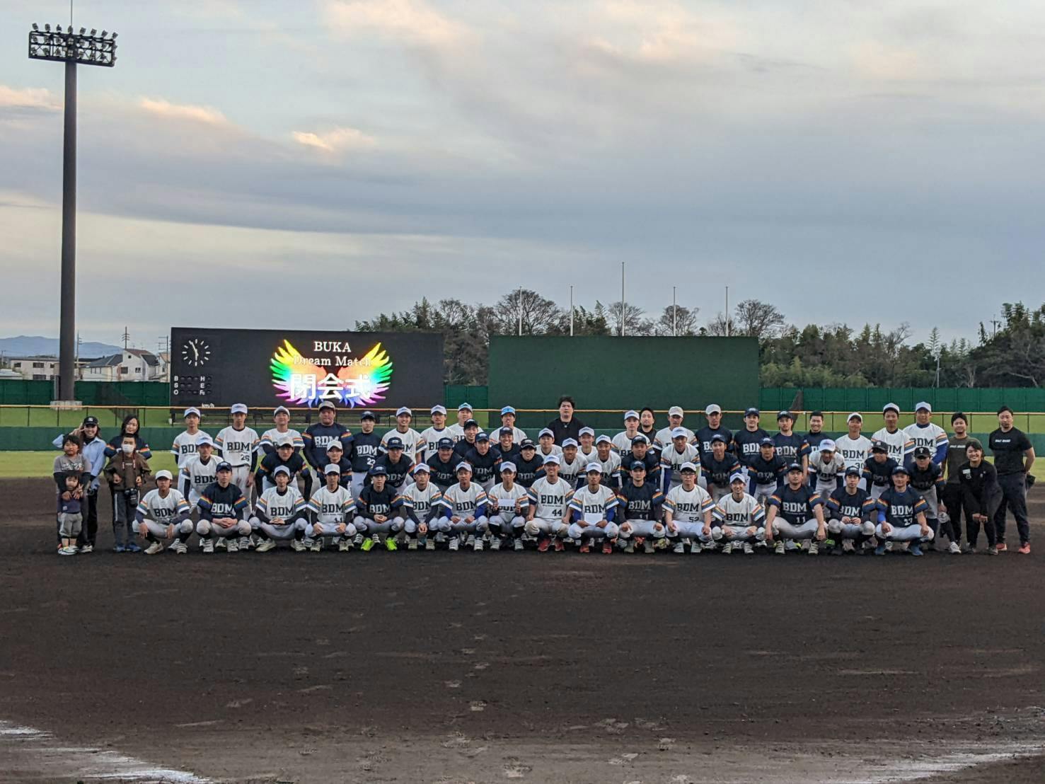 2023/03/20 23:39本日第2回BukaDreamMatchが開催されました!朝の早くから運営メンバーが集まり、大会の最終確認をして間もなく、フレンドマッチのメンバーを迎え試合へと進んでいきました。第1試合のフレンドマッチでは個性豊かな選手たちが集い、それぞれ自分たちの思いを果たすために全身全霊でプレーしました!そんなフレンドマッチのMVPに選ばれたのはマッチの中でも誰より声を出して試合を盛り上げて頑張っていた選手でした。その選手は野球の経験がなくただただ野球がものすごく好きという気持ちで参加してくれました。本来僕たちが野球を始めた頃の気持ちを今でもずっと誰よりも持ち続けている選手でした。文句なしのMVPでした。第2試合のスペシャルマッチは高校生と大学生、硬式と準硬式という新しい野球の形で行ったマッチでした。スペシャルマッチに参加した高校生メンバーは硬式野球、準硬式野球の魅力に実際に肌で感じながらプレーをして自分たちのこれからの野球の選択の幅が広がることにつながりました!どんな野球もかける思いはそれぞれ強く、良さがあり魅力がつまっています。その多くの選択肢の中で自分に合った野球、自分の好きな野球をすることが大事だと思えるマッチでした。第3試合のエキスパートマッチでは大学でも野球を続けるさらなる高みを目指す選手たちが試合の中でガチンコでぶつかりあいハイレベルなパフォーマンスを披露してくれました!プロのDJの方が選手紹介やプレーに対してのリアクションなど素晴らしい演出をしてくださりとても盛り上がっていました!本日のBDMを開催するために、クラウドファンディングで支援、企業協賛、個人協賛、応援メッセージを頂いた皆様。当日に物品協賛をして頂いた皆様。当日ボランティアとして携わってくださった皆様。実際に会場に足を運んでくださった皆様。第2回BDMに参加してくれ選手たち。そしてBDM実行委員高校生メンバーを支えてくださった皆様。この第2回BDMに関わった全ての皆様には感謝の気持ちで溢れています!!!!! ですが、、、BDMが今年で終わるなんて、、、、そんなわけありません!!!!!!!BDMの歴史はまだ始まったばかり!!BDMから決して目は離せません!!! もっと見る大会まであと2日!!