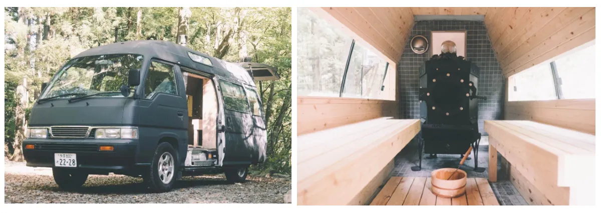 内容:水風呂利用できる川などが近くにあるキャンプ場などにサウナカーが出張に来てくれます!