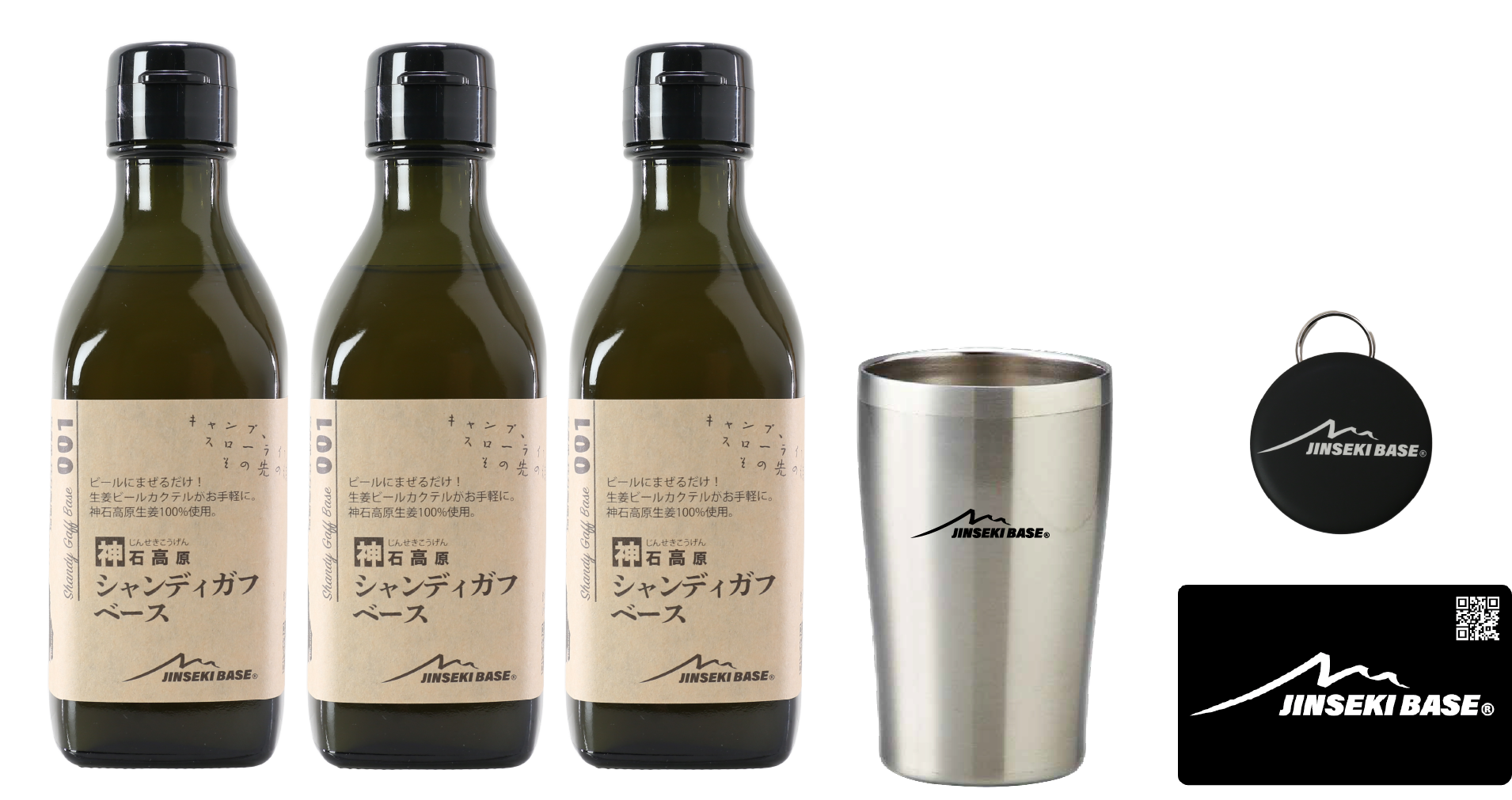 C) 天空のキャンプ場で神石高原シャンディガフを飲めるセット (ソロキャン向け、犬同伴可能)