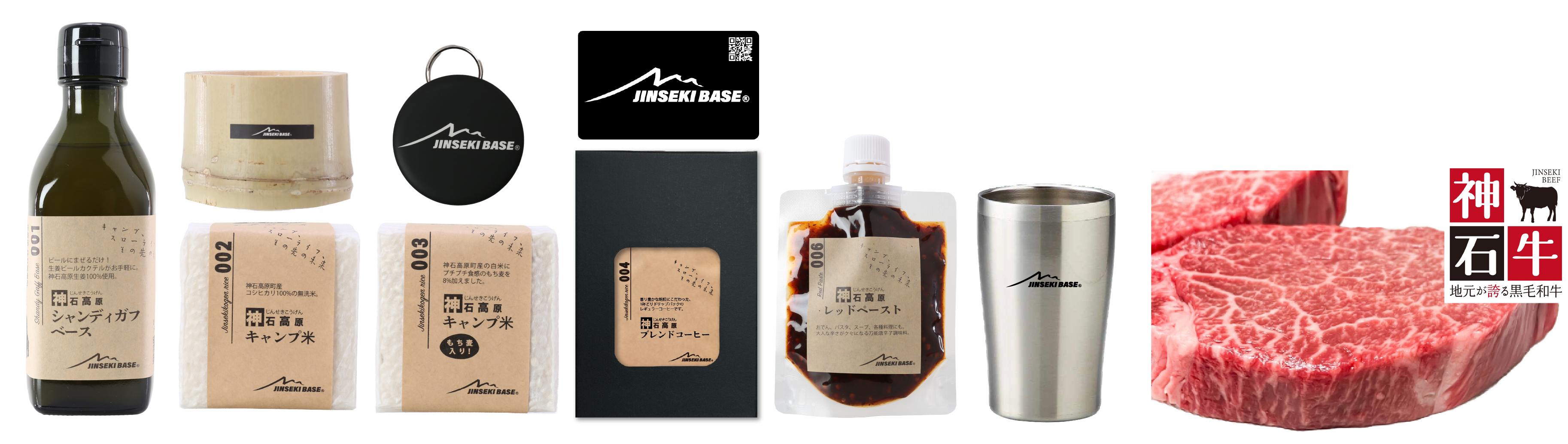 キャンプに使えるツールはもちろん、食材も神石高原町の逸品・良品をキャンプ用にアレンジした製品をお届けします。今後リリース予定の企画も盛りだくさんです。