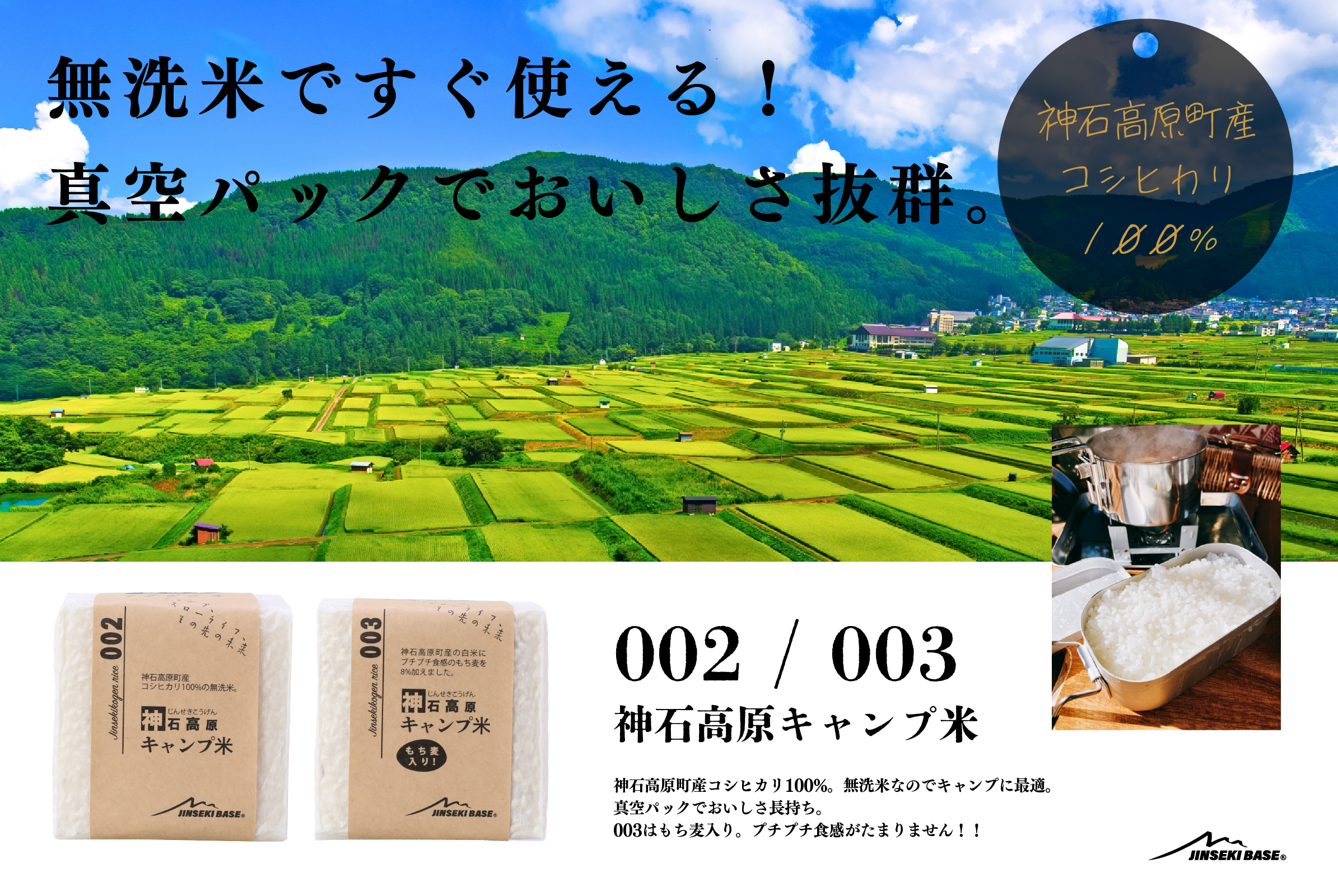 ◉002 / 003 神石高原キャンプ米(神石高原町産コシヒカリ、2合・無洗米・真空パック)