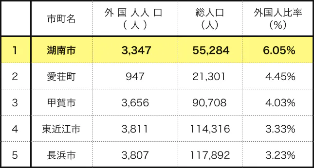 湖南市は、海外労働者比率が滋賀県でもトップ!