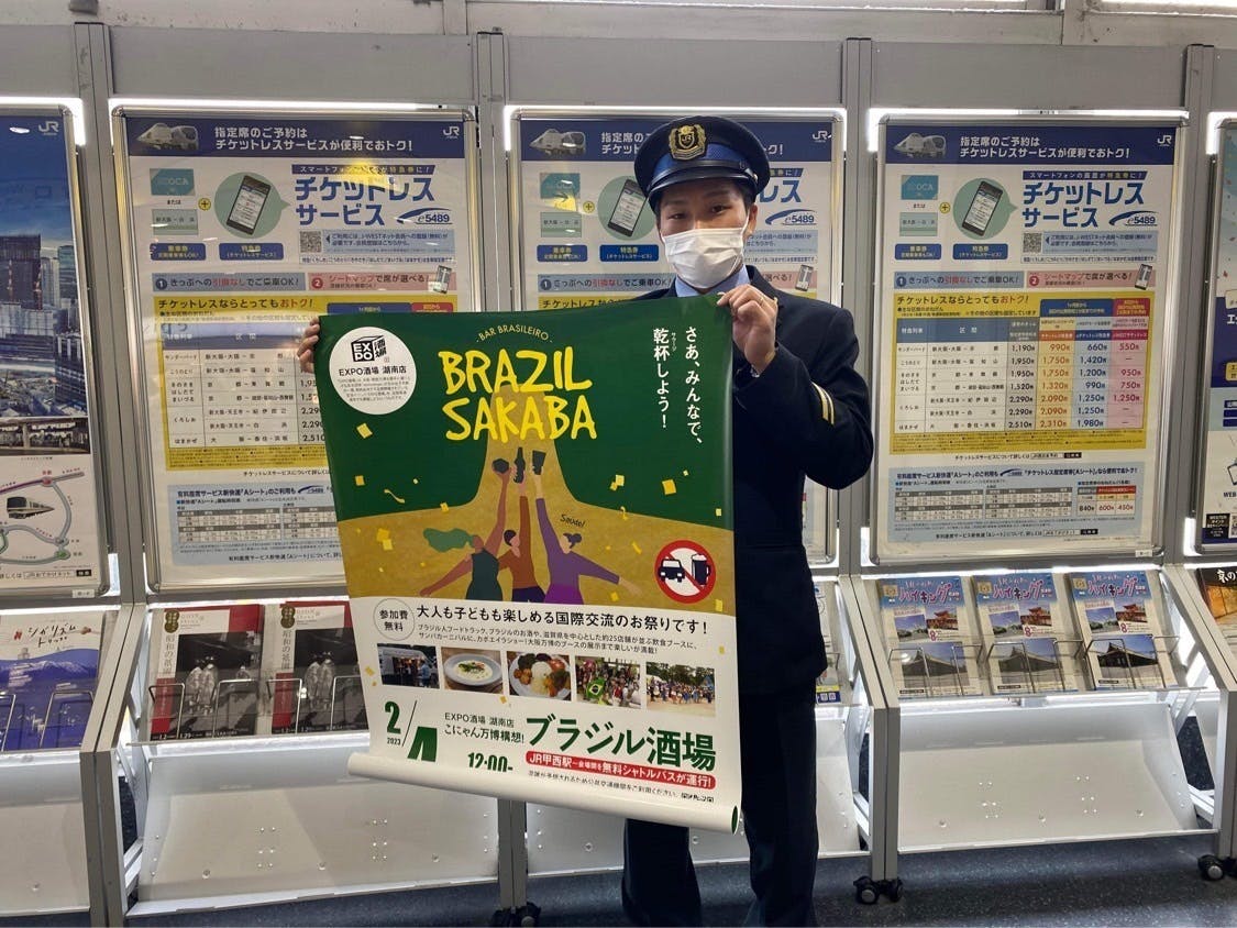 2023/02/03 00:59気づけばあと1日となりました。人から人へ、たくさんの繋がりが感じられたクラウドファンディングの期間でした。企画を進めた私の方こそありがとう!という立場なのになぜか現金を手渡されて「ありがとう!」と言われるのです。ブラジル好きだったり、海外交友を持たれていた人、ボランティア活動に尽力されているひと、日系ブラジル人でブラジルのために活動されている人。様々な縁が繋がりあって絡み合って大きな面になっている感覚があります。本当に幸せです。このイベントを進めるだけでは分からなかったこと。クラウドファンディングに調整しなければ得られなかったお金にしがたい経験と絆だと思うのです。さて、ポスター掲示協力のご紹介も最後!●コワーキングスペース 今プラス 布団屋の元倉庫店滋賀県守山市梅田町85−7いつも今プラスのみなさんに感謝してもしきれません。このイベントでもたくさんのスタッフさんに手伝ってもらっています。スタッフさんが土曜日いないくらい酒場に来ていただいています。。。すみません。。。本当にありがとうございます!●宇佐美菓子店 A la maison滋賀県湖南市石部西1丁目8−37ご近所、徒歩数分なまちのケーキ屋さん。京都から石部に引っ越してきた先の家のちかくにこんなにも美味しいケーキ屋があるのかと驚いたのを今でも鮮明に覚えています。あの時買ったケーキは、かぼちゃのモンブランゲーキといちじくのケーキ。ペロリと食べちゃいました!●スキナ ブラジル滋賀県湖南市岩根中央1丁目-51湖南市のブラジルスーパー。ここに行けばブラジルやペルーの食材が手に入る!アジア料理の具材もそっろっていて、あたかも外国に行っている気になります。●JAこうか ここぴあ滋賀県湖南市岩根4528−1会場お隣の施設、市の掲示板コーナーに貼っていただけました。農家さんのお野菜やお菓子、加工品など地域の食材を扱うスーパーです。●ワタハン滋賀県湖南市下田1624−2地域の学生服を取り扱う衣料取扱店舗さん。掲載、ありがとうございました。●石部フラワー滋賀県湖南市石部西1丁目1−32町のお花屋さん、掲載、ありがとうございました。●モノノワ滋賀県湖南市菩提寺西2丁目10−36リユースショップモモノワさま、この度ありがとうございました!そしてそして!!今回なんとJR西日本さまの草津線6駅に掲載いただけたのでした!本来なら広告費を払って掲載いただくところを無償で!本当にありがとうございました。大阪の広告制作会社に勤めていた時は、ただただ、駅ばりねー車内吊り広告ねー巻き貼りねー車内ジャックねーと、価値をこれほどまでに感じなく作っていたんですが。一枠をいただけだけで飛び上がりました。これで草津線のお客さんが増えるきっかけになればいいなと。また草津線を使った何かができたらいいなと思うのです。そして便数も増えたらみんなうれしい!友人、草津駅長、そして後押しをしてくださった市役所には感謝です。●西日本旅客鉄道株式会社JR西日本 草津駅JR西日本 手原駅JR西日本 石部駅JR西日本 甲西駅甲西駅の市役所コーナー!甲西駅は酒場でいっぱい!JR西日本 三雲駅JR西日本 貴生川駅TEAM EXPOのイベントにも掲載いただいています。https://team.expo2025.or.jp/ja/event/305皆様。本当にありがとうございました! もっと見る