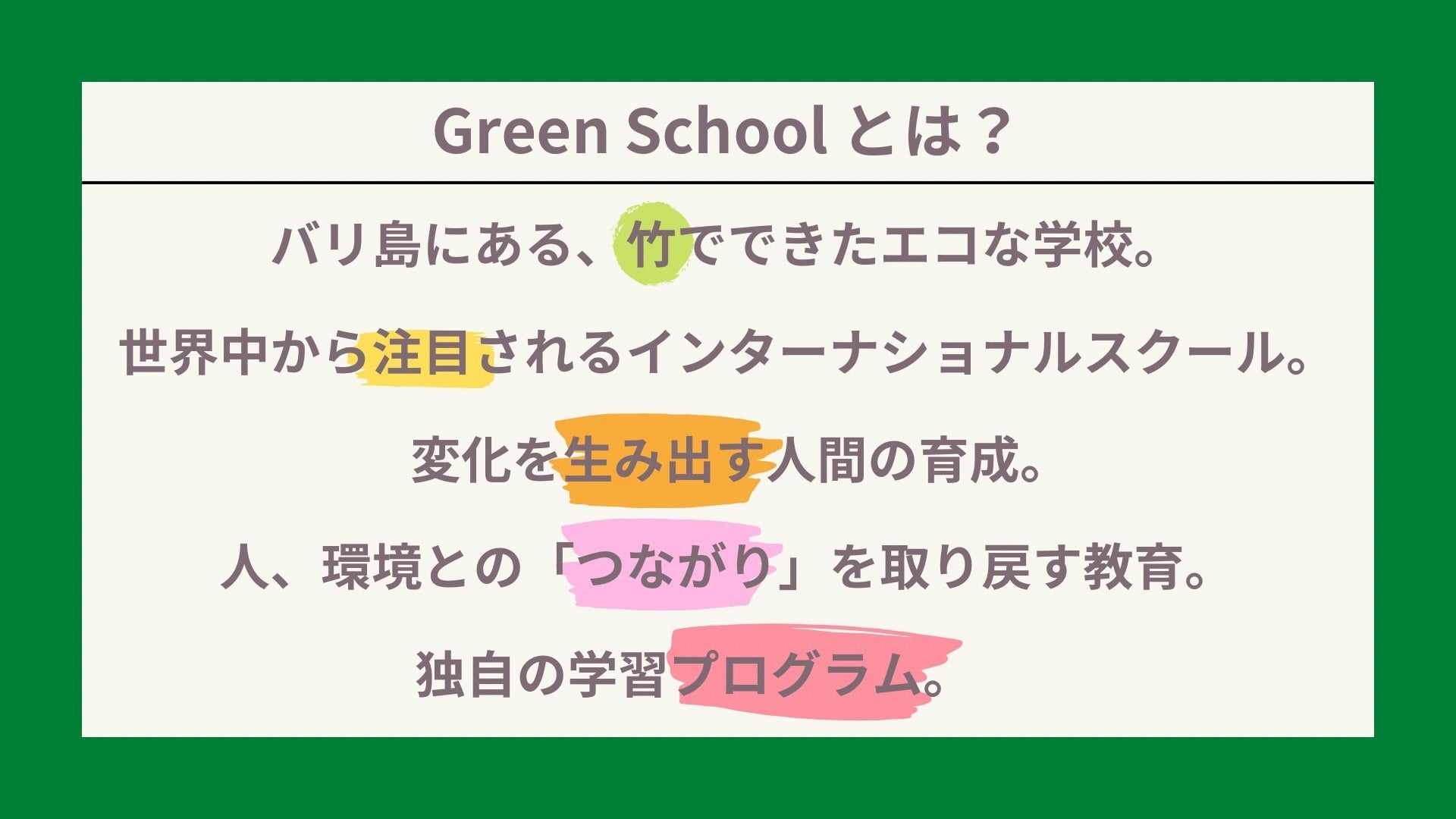 Green School Bali に行ってきました!!