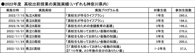 ・高校生に、将来のキャリア形成、人生設計を想像できる力を身につけるプログラムを提供することへの賛同をいただくこと(多くの高校で、消費者教育に加えてこのプログラム実施できる可能性を高めること)