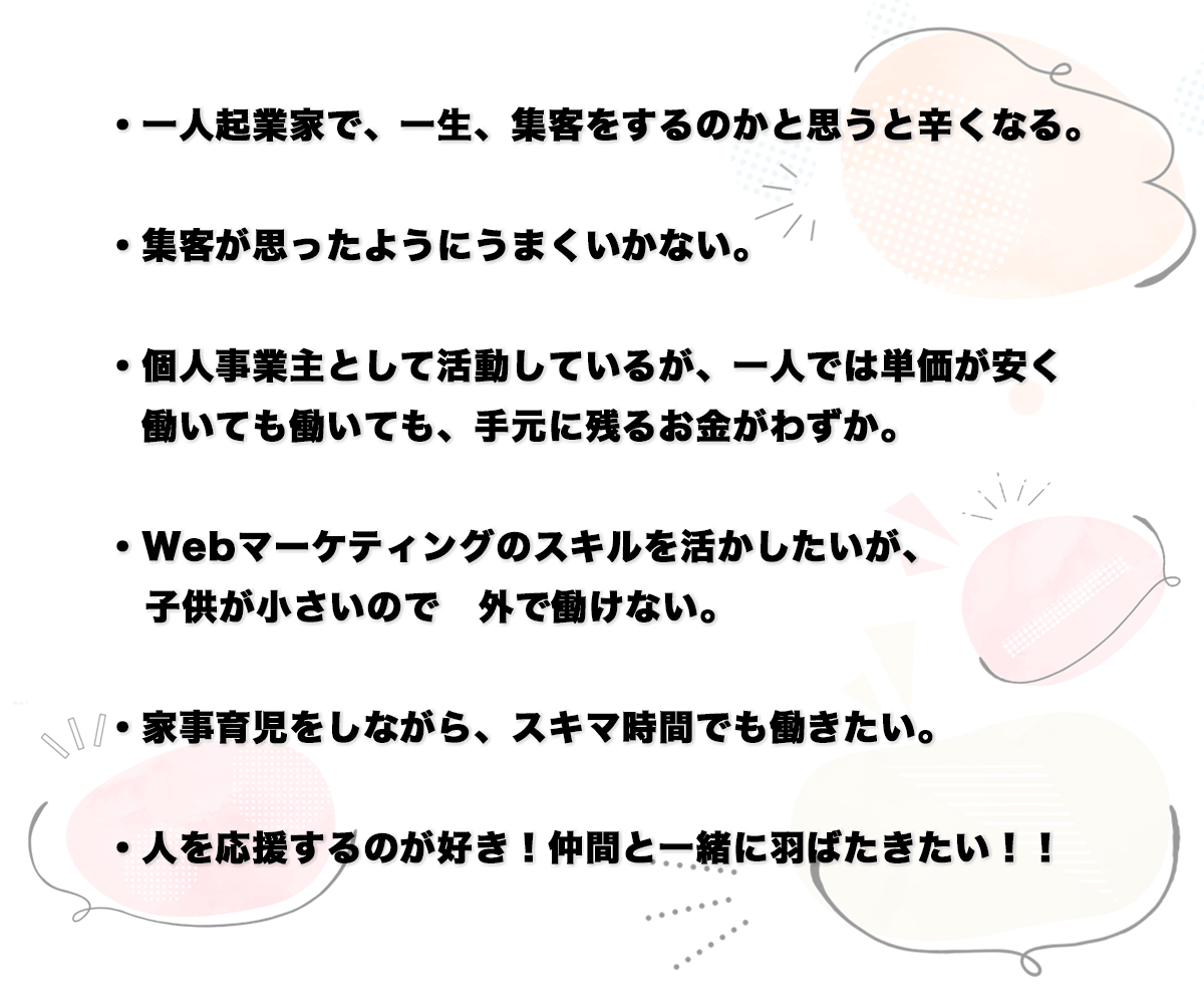 一人で悩んでいませんか?「女性Webマーケテイング協同組合」の仲間が一緒に悩みを解決します!