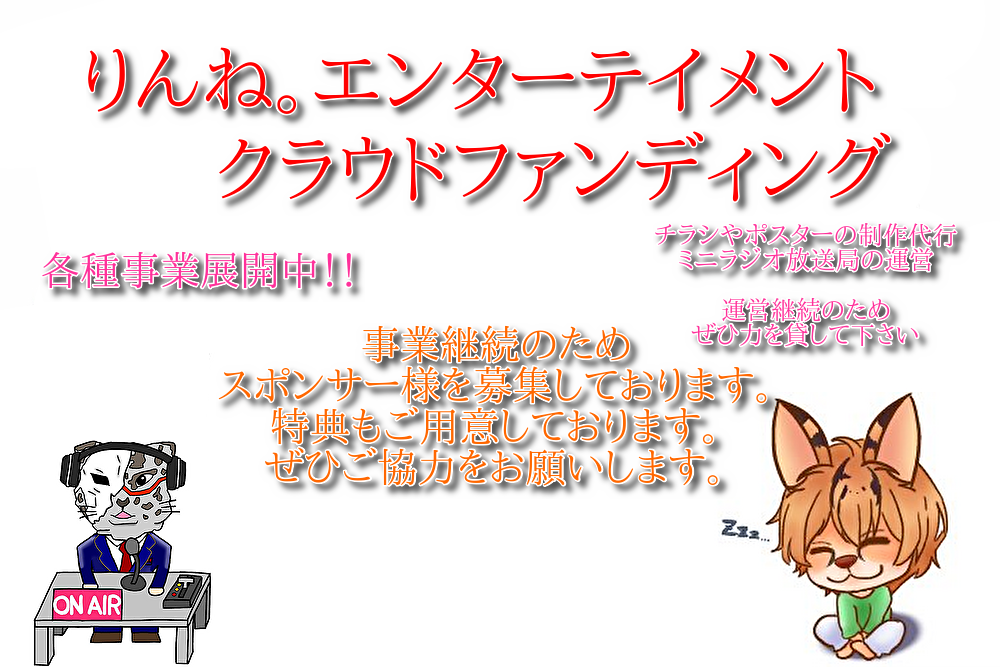 ご協力をいただいた方は1年間「りんね。エンターテイメント」スポンサーとして登録をさせていただきます。