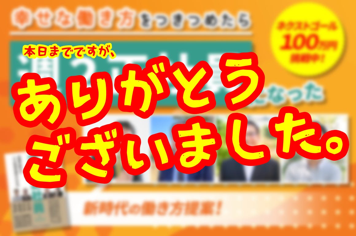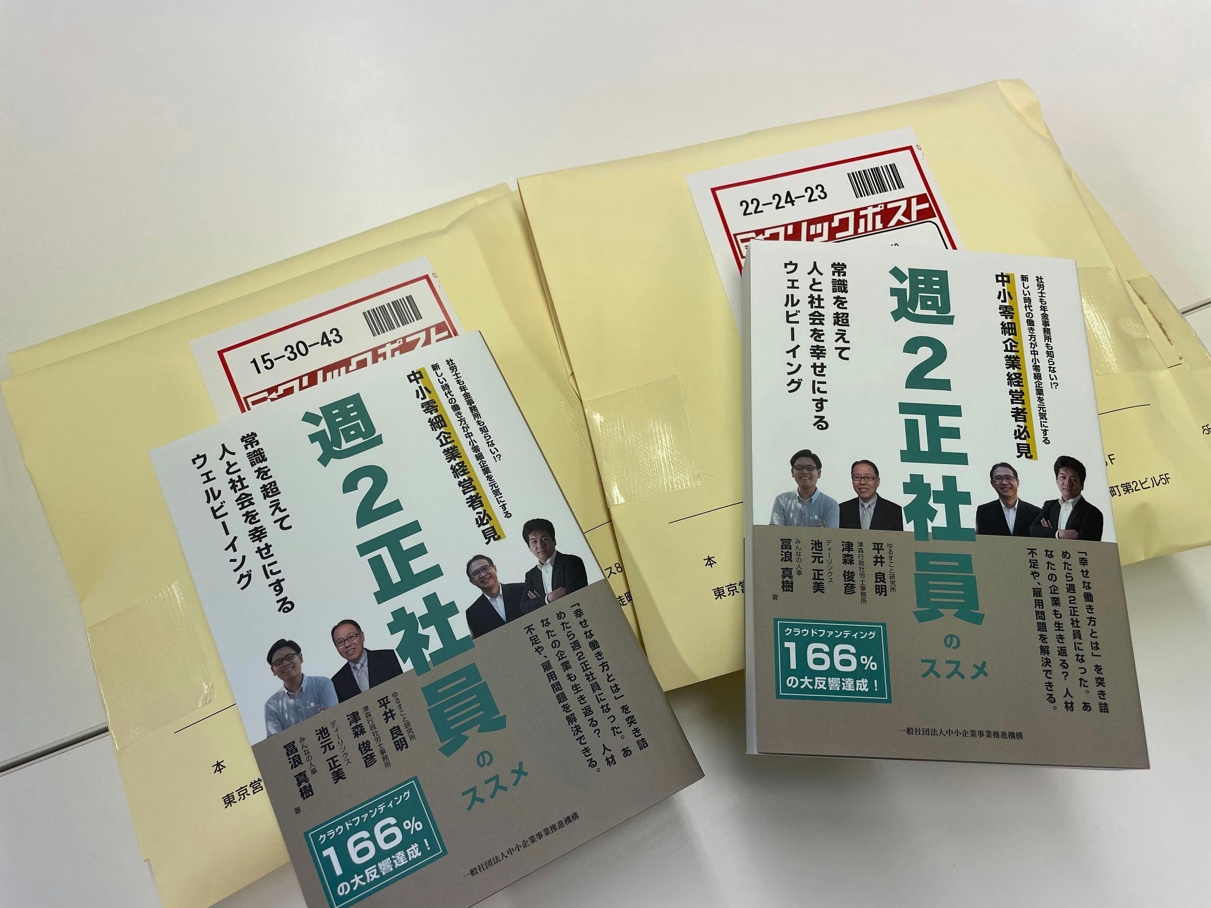 2023/04/19 08:33クラウドファンディング支援ありがとうございました。支援していただいた皆様にリターンに選んでいただいた書籍を順次お送りしております。支援いただいた皆様への書籍は、AMAZONでの注文品と違い、ソフトカバーがついております。限定品となりますので、AMAZONで追加で頼まれるときには、カバーのない商品が届くと思います。中身は全く一緒ですので、ご安心ください。また、今後4人の写真が載った表紙も今回が最後になりますので、ちょっと自慢していただければと思います。では、お手元に届くまで少々お待ちいただければ幸いです。 もっと見る