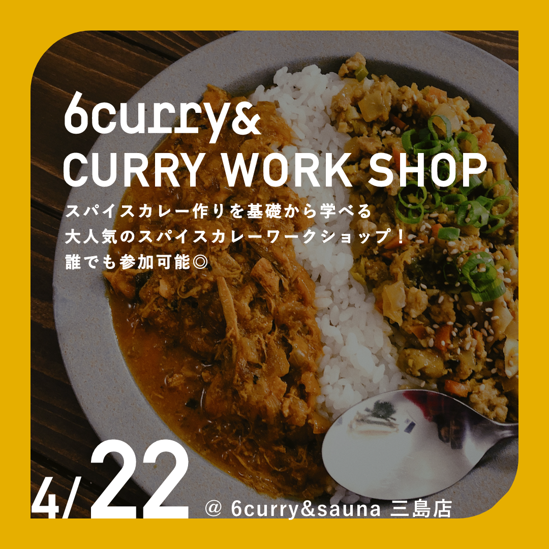 2023/03/29 17:00こんにちは!一平です!スパイスカレー作りを基礎から学べる、大人気のワークショップを三島店にて開催します。これまで100回以上、スパイスから調合して作るカレーワークショップを開催してまいりました。スパイスから作るカレー作りが学べるだけでなく、みんなで作る達成感やそこから生まれるつながりが楽しいのがワークショップの醍醐味です。今回のテーマはみんな大好き"チキンカレー"です!スパイスの香りを嗅いだり、かじったり、混ぜたりしながら、あなただけのスパイスミックスを作り、グループでカレーを作っていきます。最後はみんなでおいしくカレーを食べましょう!▼ワークショップ概要開催日時:2023年4月22日(土)時間:13:30-16:00(開場&受付開始13:00)持ち物:エプロン参加費:3,000円定員:8名場所:6curry&sauna 三島店住所:〒411-0853 静岡県三島市大社町18−52 LtG Start up Studio三島駅から徒歩10分(三嶋大社目の前)※そのまま6curry&sauna 三島店営業にご参加可能ですイベントの詳細・申込は下記よりご確認ください!https://peatix.com/event/3541183/6curry&では様々なワークショップ開催を行なっていきます。参加だけでなく、こんなことをやってみたい!など絶賛募集中です〜! もっと見る
