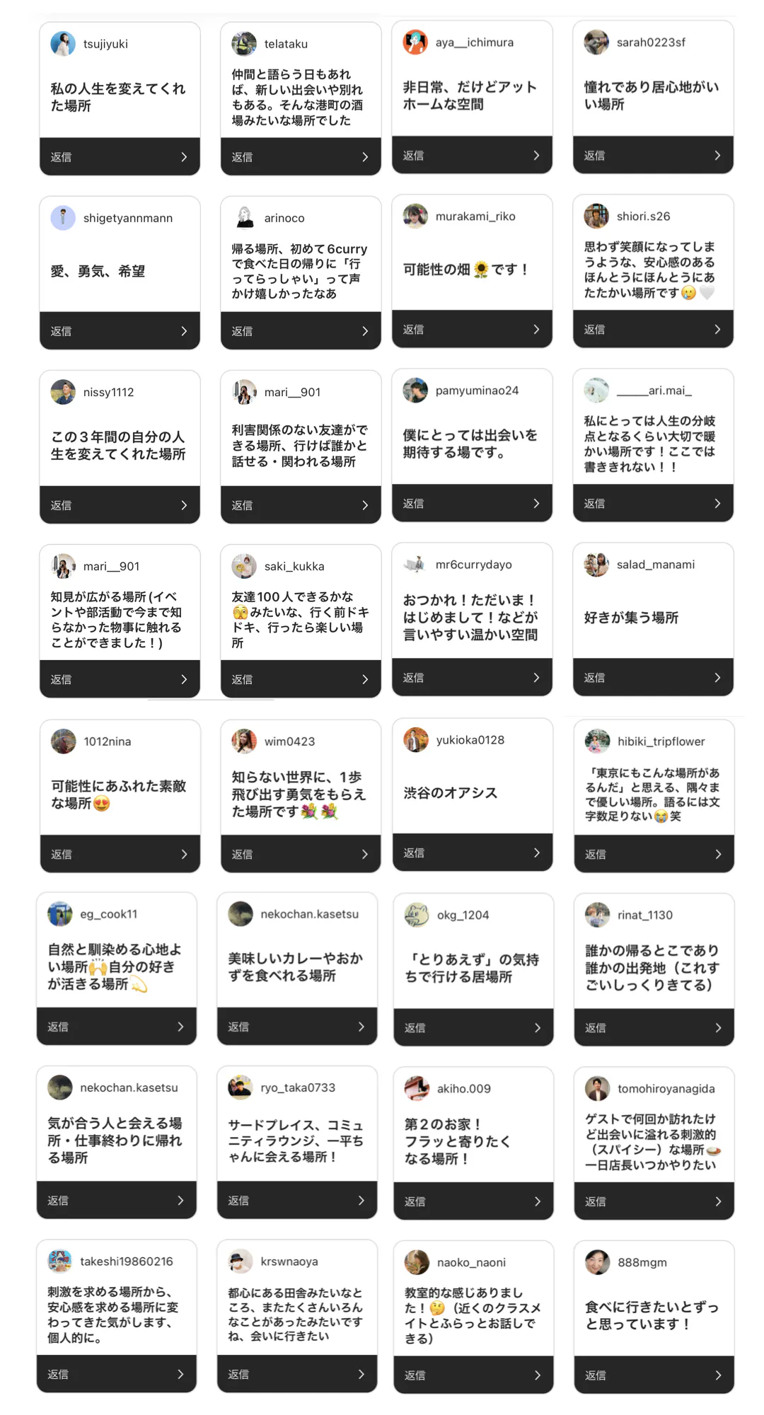 6curryでの体験は、「人生を変えるほどの刺激的な出会い」があったり、「まるで実家のようにほっと一息つける場所」であったり、「毎日の晩御飯を食べる食卓」であったり、使い方は人それぞれに、毎日がドラマの連続でした。