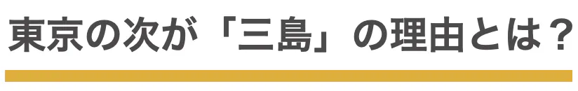 三島駅は、新幹線が止まり県外からのアクセスが良い上に、車を使えば沼津、熱海、箱根、伊豆は30分程度でアクセスができる「交差点」としては最適な場所です。