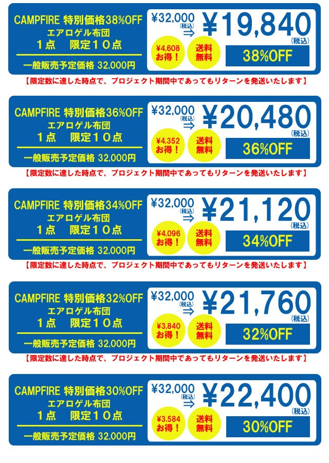 【限定リターンは限定数に達した時点で、プロジェクト期間中であってもリターンの配送をいたします】