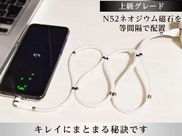 ・磁石で巻きつけ絡まらない「Magic Cable特許」