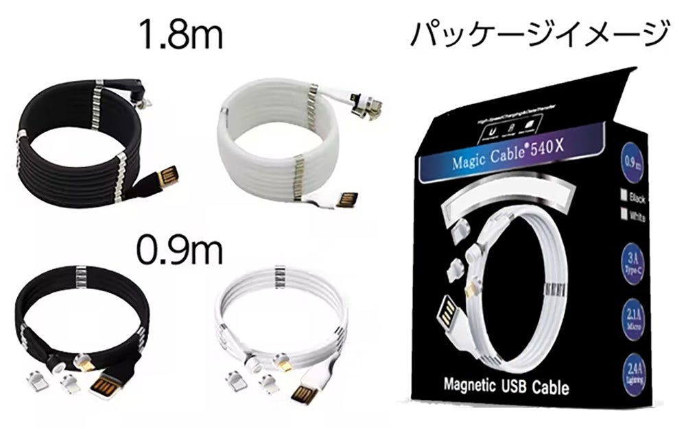 『Magic Cable 540X』は『特許取得』の独創的な発想とデザインにより、充電ケーブルが絡まってしまう面倒さを解消します。