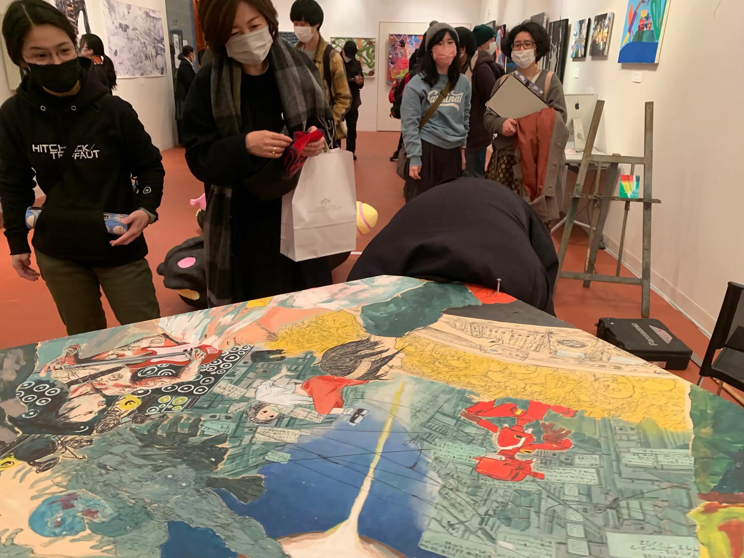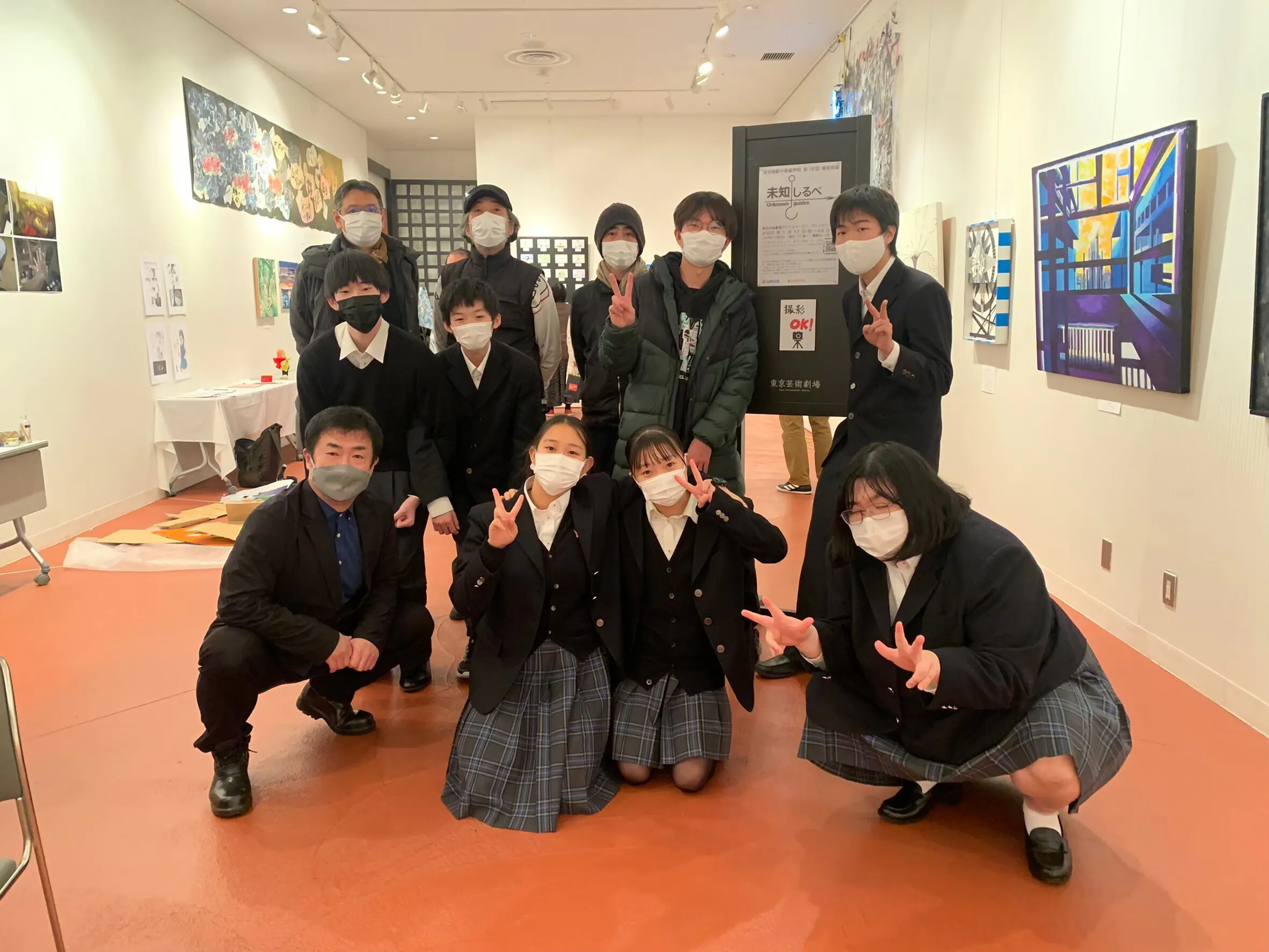 2023/02/14 17:33展示準備期間中は104人の方に614000円の支援を頂きました。観覧者は去年よりも多いい802人参加作家総勢55人作品数102作が展示されました。土曜日の外部アーティストのトーク、最終日パフォーマンス&アーティストトークではたくさんの方々に観て頂きました。これにて全てのプログラムを終えることが出来ました。皆様の支援おかげで今回の部展を成功させることが出来ました。観覧していただいた方々は作品を通して何を見て、何を考えてくれたのでしょうか?感想文やアンケートを見ながら今回の展示の成果や反省点を整理しています。その内容は「見る」、「考える」展レポートにて発信する予定です。観ていただけなかった方達にも現場の雰囲気が伝わるようにレポート制作をしていきます。私たち美術部はこれからも部活を頑張り自分たちが楽しみ、観てくださる方々にも楽しんでもらえれるように作品を制作していきます。直接お届けするリターンはただいま制作中ですので今暫くお待ちください。今回は本当にありがとうございました。 もっと見る今日は最後の日!