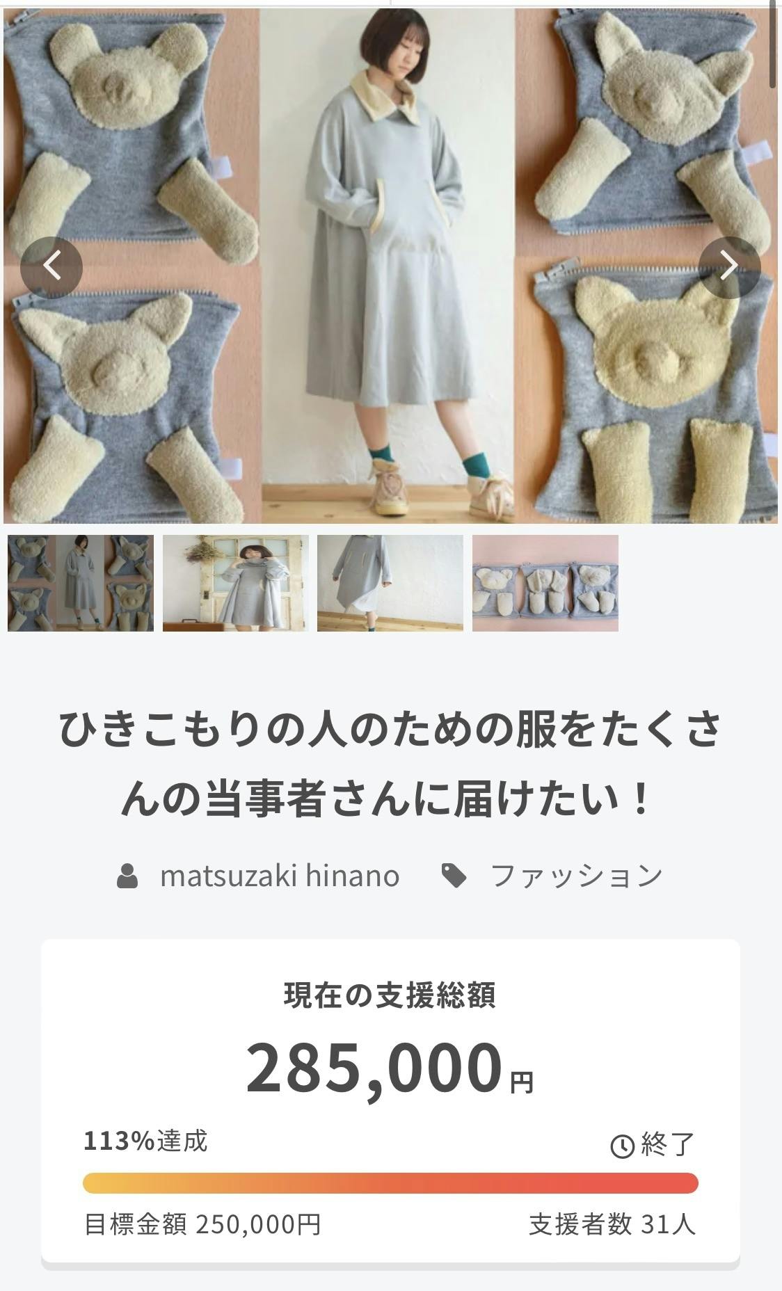 2020年10月 ワンピースタイプの制作をするクラウドファンディング開始→成功