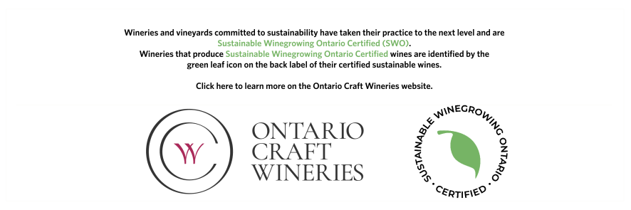 VQA ワインのルールとして、常に 100% 持続的に認定されたオンタリオ産のブドウからオンタリオ州で作られています。