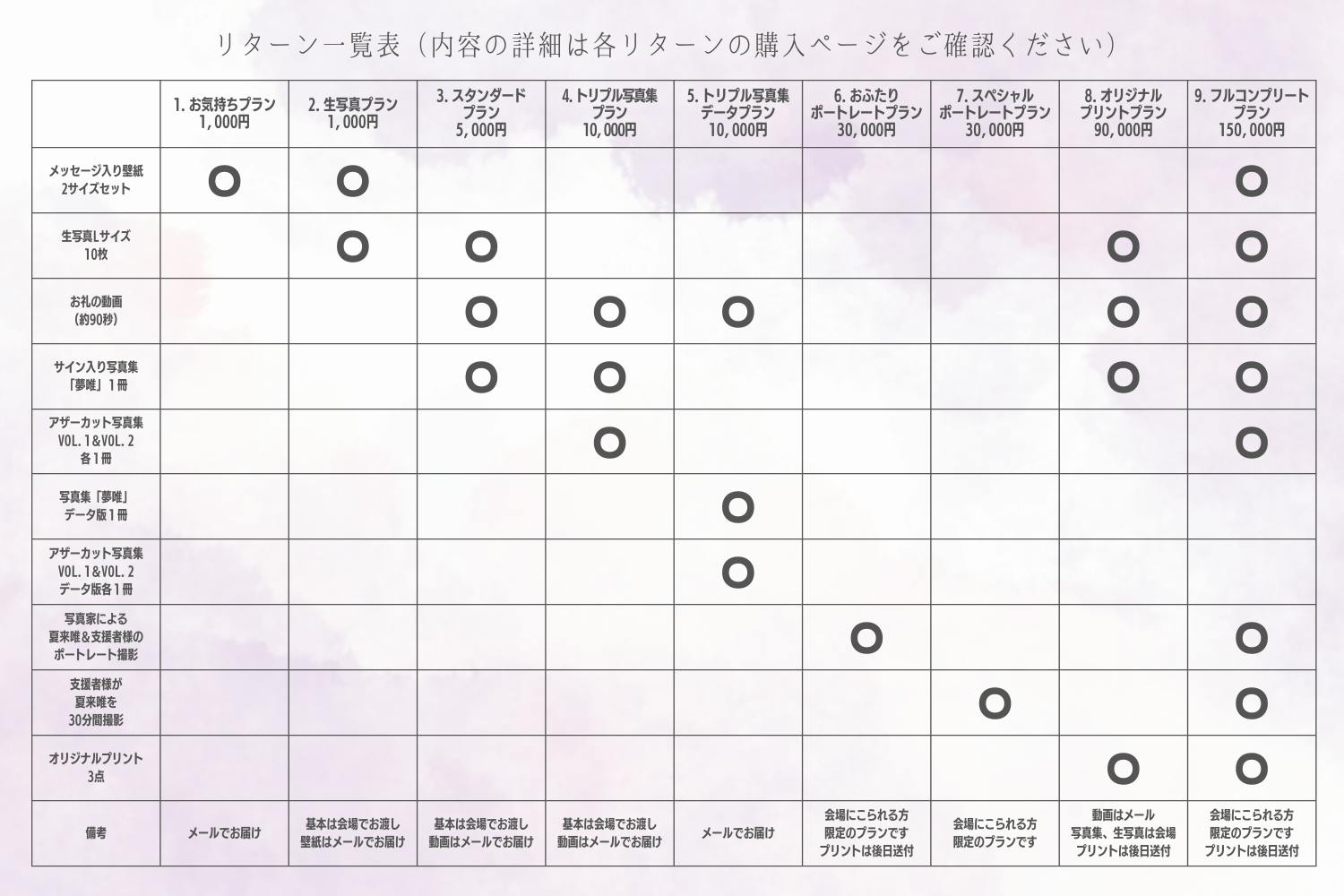 2. 生写真プラン 3,000円