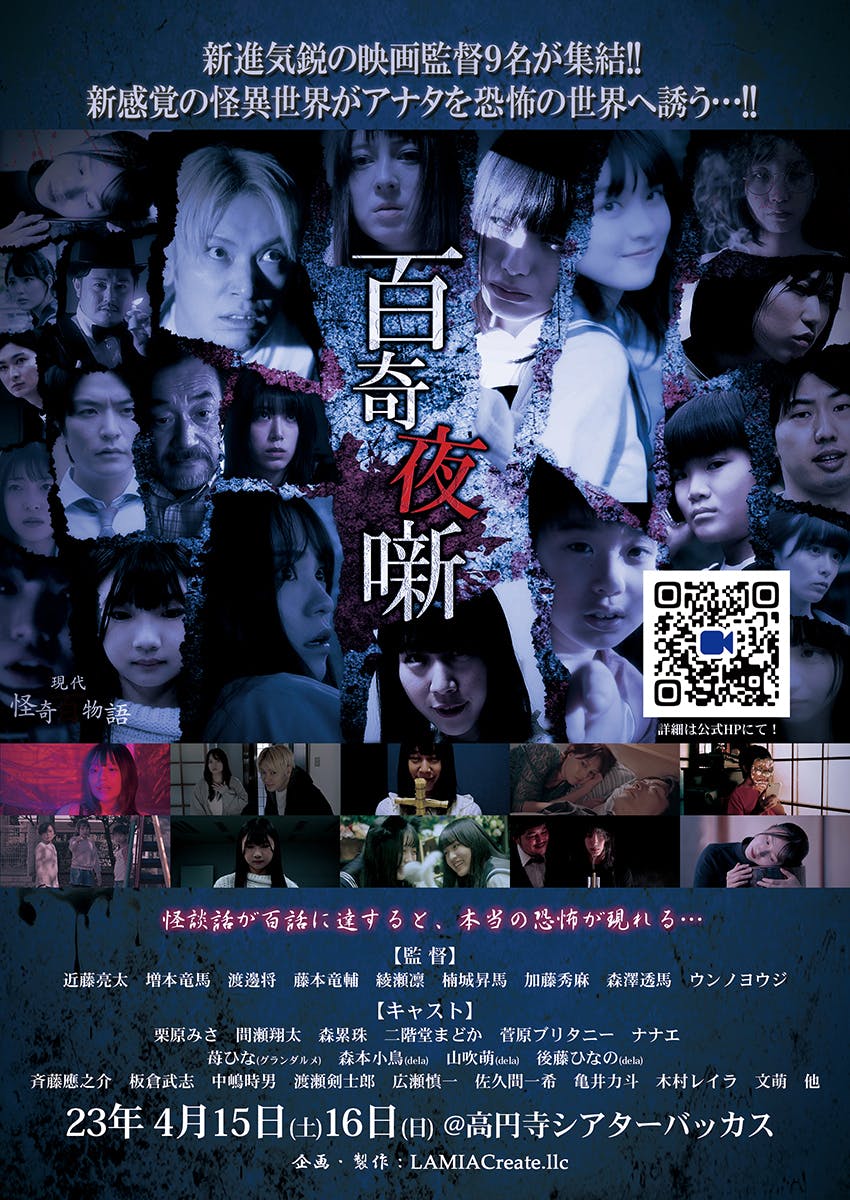 本企画第一弾の「現代怪奇百物語 怪談短編集」は、21年に都内 映画館にて上映後、22年4月6日にDVDリリース、各配信サービスにて公開開始しました。本作「百奇夜噺」もDVDリリース及び各配信サービスにて公開は決定しております。