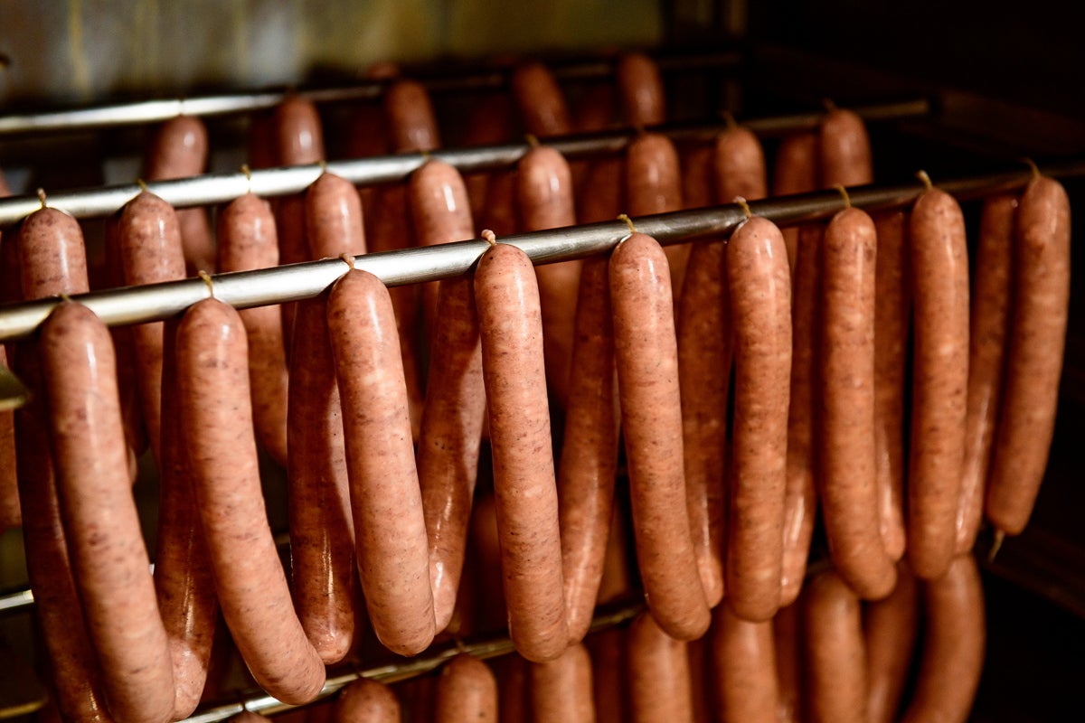 私たちは、無添加にこだわり、スパイスも既製品ではなく肉の種類や状態に合わせて独自に配合。ソーセージの皮には天然の腸(主に羊。種類により豚や牛など)を使用し、腸詰やスチームもドイツ製機器で行うなど、ドイツの伝統的な製法を守って本場そのままの美味しさを再現しています。