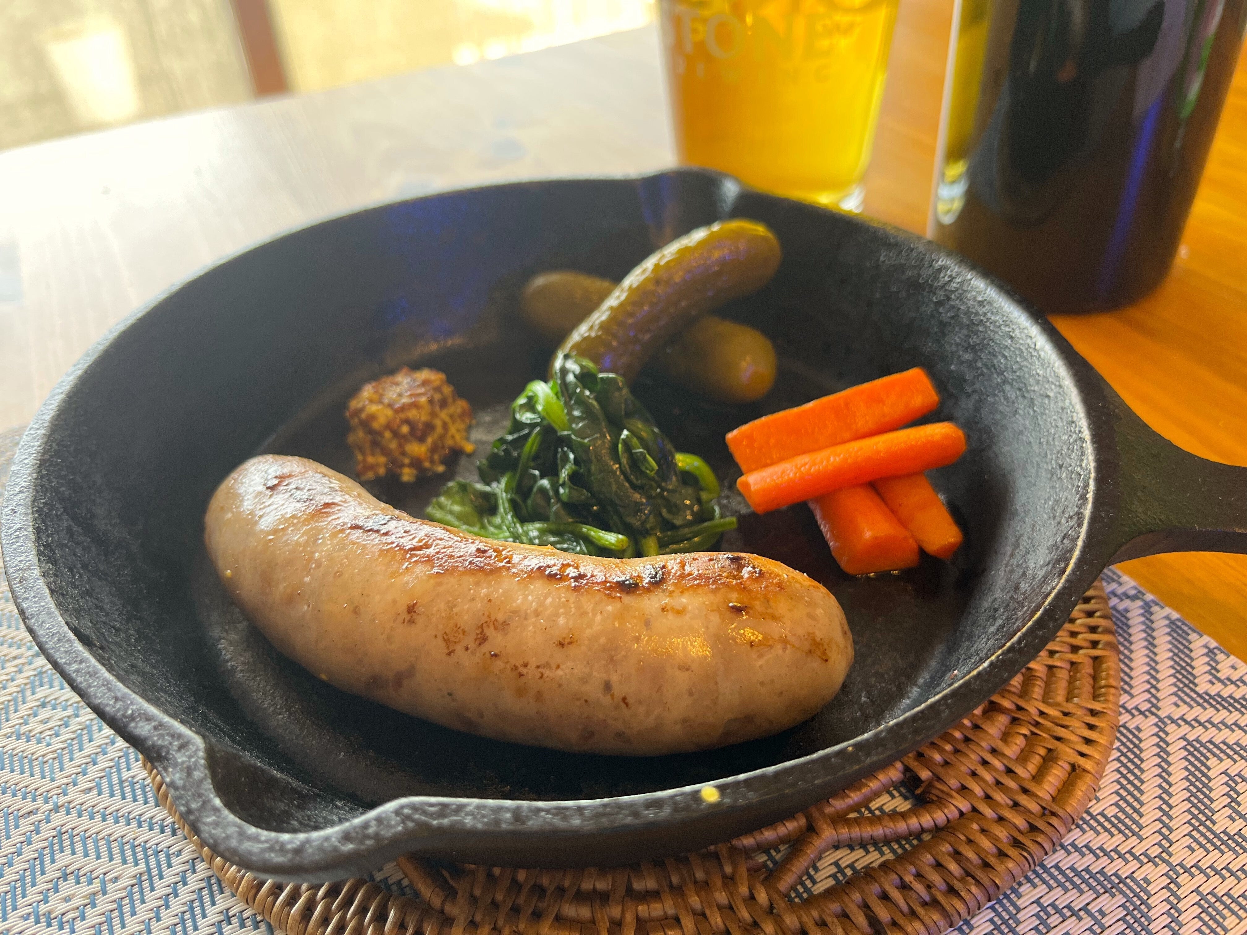 粗めの挽肉がごろごろと残った食感に、お肉と香辛料の混ざったえもいわれぬ薫香。絶妙な塩味。昔、出張先のヨーロッパで感動した本場ソーセージ。