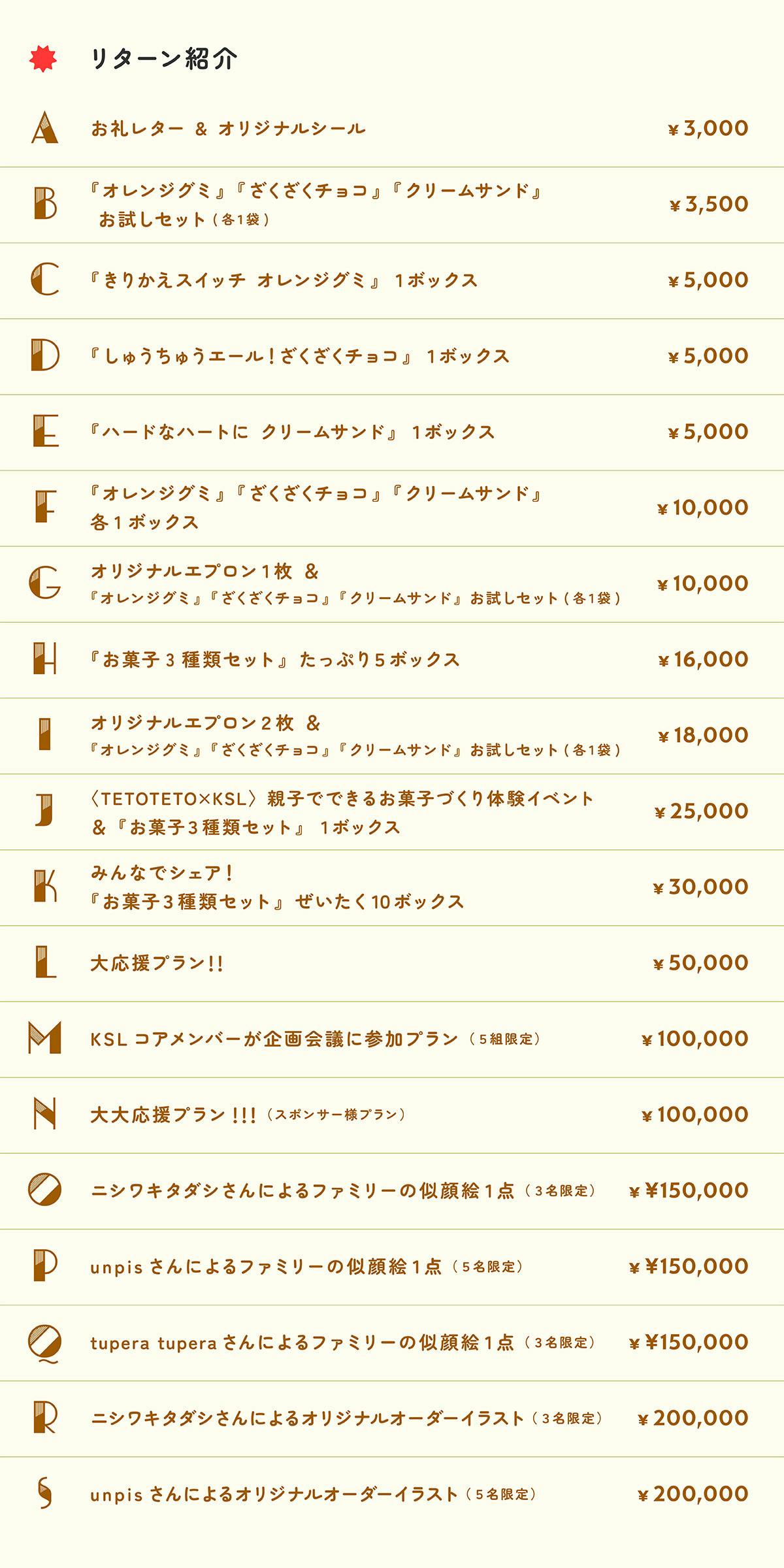 このクラウドファンディングを通じて、KSLが一人でも多くのみなさんと出会える機会になればと思い、幅広いリターンの商品を考えさせていただきました。