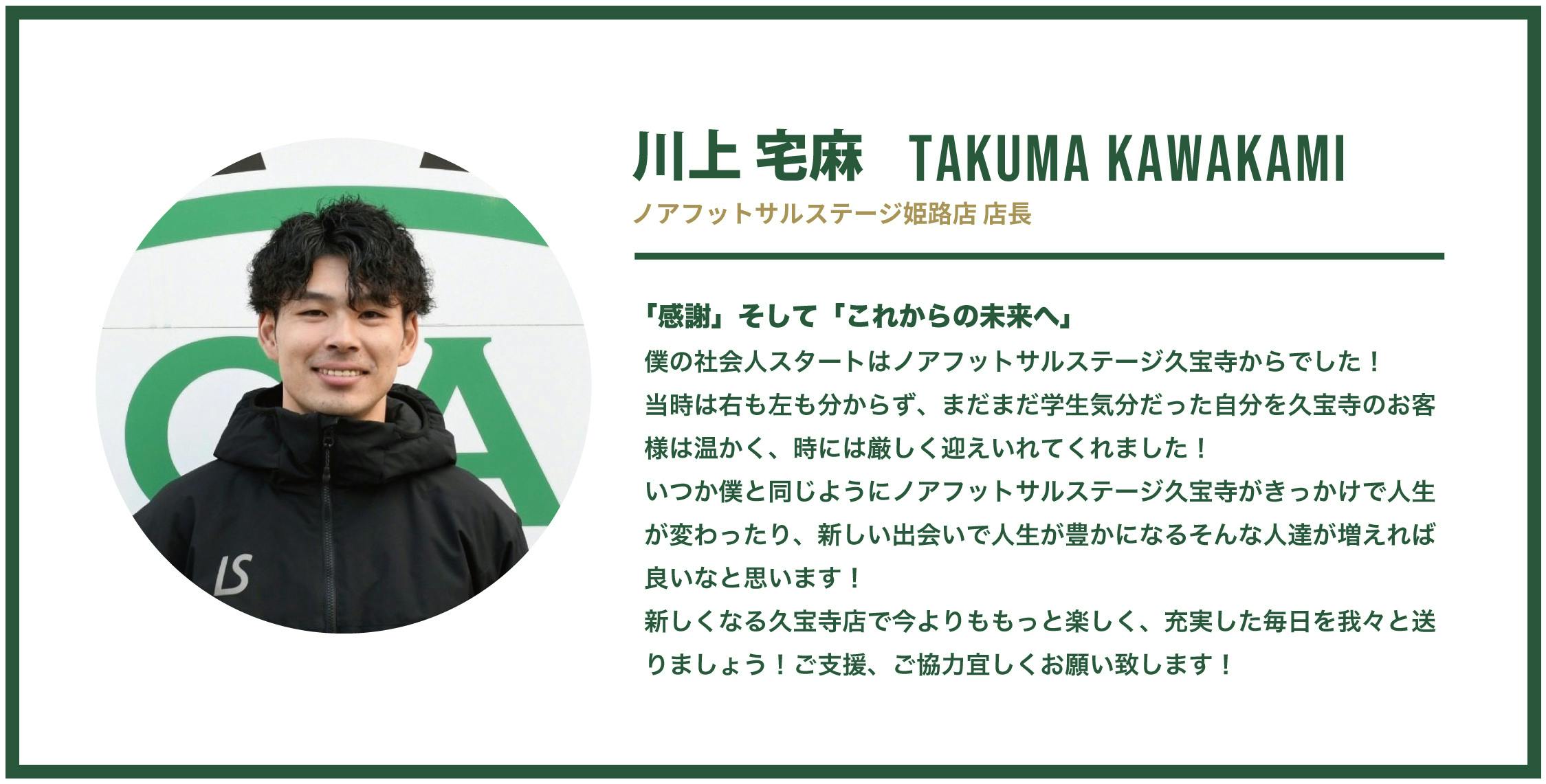 2023/07/01 10:17みなさんご無沙汰しております!早速ですがまずはお知らせから!!クラウドファンディングにて制作したスタッフウェアの一般販売が正式にスタートしました!!!6種類展開!今のところ一番人気は黒グレーの長袖!二番手は白半袖!遠方の方のご支援も多かったためネッショップも開設しましたので一度覗いてみてください!https://noahfutsal.base.shop お次はバナー掲載していただいていますパートナーのご紹介です。 ※順不同これからも濃い絡み、をしていきますのでみなさまもぜひご覧ください(笑)兵庫県龍野市にあるたこ焼き屋さん 天下二刀流 武蔵!スタッフもおいしくいただいております!兵庫県周辺にお住まいの方はぜひ行ってみてください!神奈川民からすると、食べたことのないとろっとろのたこ焼き、だしの効いた味、、、もうこれは、ハマること間違いなし!!関東の人にもぜひ味わってもらいたいたこ焼きです!http://www.eonet.ne.jp/~musashiworld/takoyaki/Musashi.html事業用トレーラーハウスを国内製造するメーカー トレーラーハウスデベロップメント!多様なサイズと利用用途を取り揃え!事務所やサウナ、キャンプ場まで、さまざまな利用用途あり!トレーラーハウスデベロップメント様が出展していた、東京トレーラハウスショーに弊社建設デザイン部も出展させていただきました!https://www.trailer-house.co.jpプレーヤー、youtuber、経営者、スクールコーチ...肩書き多き田中優輝さんが手がけるブランド、GOBERNANTE(ゴベルナンテ)!ノアでも特大イベントからクリニック、物販ブース等様々なコラボをさせていただいております!わたしもひっそりと購入...!!今後もさまざまなコラボイベント開催予定!技術も人柄も最高位な田中優輝さんにハマること間違いなし!https://gobernante.official.ec東京のデザインコンサルタント佐村義和さんが手がける、都会の大人たちのためのスポーツライフスタイルブランドSCCOO TOKYO(スクートーキョー)バナー掲載をきっかけに、定期的に経営者、クリエイター、アーティスト、(レースクイーン!?)を集めレンタルコートをご利用いただいております!経営者、クリエイターの方で参加してみたいという方は佐村さんまで!https://twitter.com/RETRIEVERS_JP横浜を中心に神奈川・東京で新築分譲事業、中古戸建・マンション買取販売事業、宅地分譲事業を行っている 株式会社さくら総合地所!一度会社訪問させていただきましたが、屋上から見渡せる景色が最高すぎました...!!ホームページには「ノアフットサルステージを応援しています!」という掲示までしていただき、とにかく感謝しかありません!!山本社長!宮越さん!ありがとうございます!https://www.sakura-zisyo.co.jp神奈川県フットサルリーグ1部 encasa(エンカサ)!週2回練習場所としてノアをご利用いただいております!代表の田中さんを筆頭に、毎週SNSにタグづけしていただいたり、利用後のコートの清掃、片付けも毎回丁寧にしていただいております。心から応援したくなるチーム!!!応援しています!https://www.instagram.com/encasa.official/?hl=ja兵庫県加古川市にある美容皮膚科クリニック T clinic kakogawa!Dr.田中正樹姫路店店長のたくまもお世話になったことがあるというウワサ!男性もご利用いただけます。全身脱毛5回で180,000円!私も断然医療脱毛派!「地域のクリニックでより患者の身近な存在となり患者様と寄り添って医療を提供したい。」心も身体もきれいになりたい方はぜひ、院長田中先生のT clinicへ!https://tclinic-kakogawa.com大阪府八尾市内の龍華小・永畑小・亀井小・久宝寺小を中心に活動する小学生サッカーチーム、八尾久宝寺スポーツ少年団!1973年に創設し、2023年に50周年を迎える歴史長きチームです!ノアフットサルステージ久宝寺店で7月に開催される【ジュニア大会~人気youtuberLIZEM(リゼム)が閉会式に登場!】にもエントリーしていただきました!全力応援!団員募集中!体験&見学はいつでもOK 下記にご連絡ください!℡090-3941-0942/e-mail:kyuhojijsc@yahoo.co.jp神奈川県横浜市にある不動産会社 優栄ブルーハウジング!山本社長を含め、社員の方にもノアフットサルステージ横浜をご利用いただいております!いつもありがとうございます!新築一戸建て、中古一戸建て、土地・売地、マンション、リノベーション物件、収益物件 をお探しの方はぜひブルーハウジングにお問い合わせください!https://www.bluehousing.co.jp大阪府中心に活動する a.s.football!ノアフットサルステージ茨木店をご利用いただいております!アンディーコーチの指導はとにかく熱い!子どもたちも真剣に話しを聞いている姿が印象的です!7月にワンデー単発トレーニングも開催!7月17日(月㊗︎)17:00〜18:20 低学年/18:30〜20:00 高学年この機会にぜひ体感しに来て下さい!https://www.instagram.com/a.s.football/?hl=ja以上、パートナーのご紹介でした!パートナー最高!応援する、応援される関係!みなさま本当にありがとうございます!ノアフットサルステージはこれからも挑戦し続けます!!!バナー掲載してみたい!とりあえず話を聞いてみたい!という方はお気軽にお問