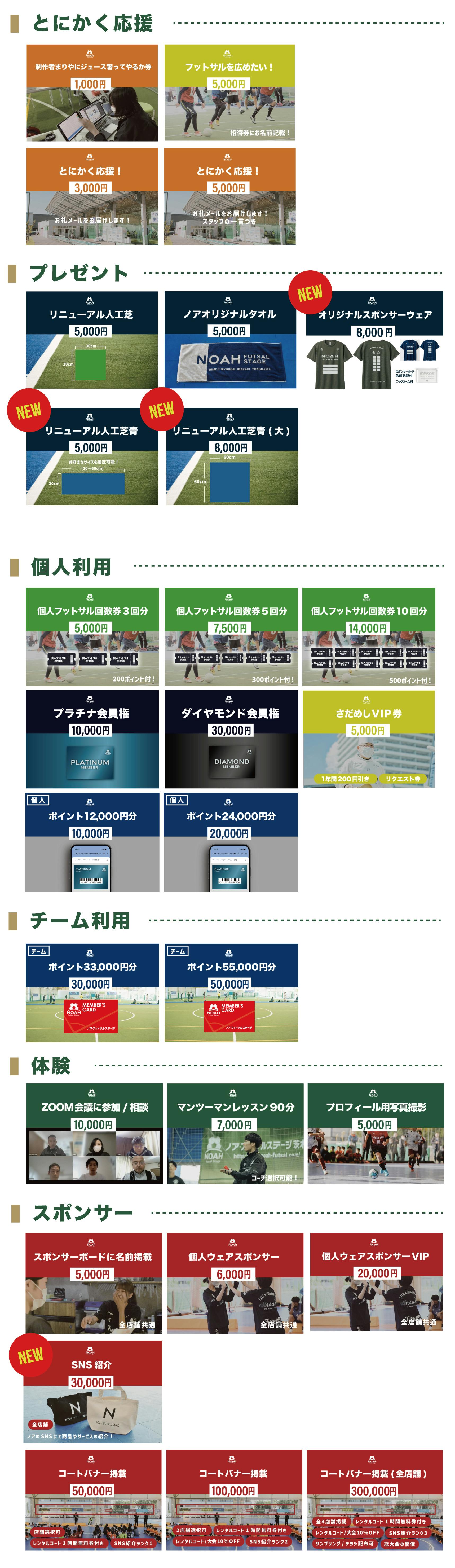 2023/04/29 16:39昨日、CAMPFIREからクラウドファンディング支援金の入金がありました!ご支援いただいた皆様、本当にありがとうございました。なかなかか活動報告更新できずすみません...想像以上に多くの方にご支援いただき、リターン作業に追われていました...(嬉しい嘆き)こんにちはmariyaです。無事、皆様にリターン配布が完了しましたためリターンの紹介をさせてください!いや、とてもいい感じなので、ぜひ見てほしい!!!!!クラウドファンディングリターン紹介 第一弾★パートナー記載のオリジナルウェア!こちらは2023年度スタッフウェアとして使用いたします!クラファン限定色のグレー、ネイビーはお客様用!パートナー様ひとつひとつ、ぜひじっくりと見てみてください!大変ご好評のため、特別販売検討中だとか.... ( ・∇・)ちなみに私は長袖派です。夏でも絶対長袖。なんか守られてる感あって好きなんですよね!決してかっこつけじゃないですよ!いや、ちょっと長袖かっこいいって思ってる節あるけども!笑次回はスポンサーボード、写真撮影プランのご紹介です!お楽しみに!クラウドファンディングが終了してから約2ヶ月おかげさまでノアフットサルステージ久宝寺はオープニングイベントも無事に終了し毎日綺麗な人工芝で、気持ちよくお客様を迎えております。オープニングイベントではフットサル系youtuber 二井岡高登ゲーム会を開催!四回生...(関東では四年生)の卒業イベントもあり早速、みなさまの笑顔をたくさんいただいております。今後も、個人フットサル、個人スクール、フットサル大会、特別イベント、そしてフットサルだけに留まらず保育園の運動会、自治体イベント、地域のマルシェ等スポーツを起点としながらも多様な利用方法で人と地域とがつながるコミュニティの場所を作っていきます!これまで以上により多くの方を笑顔に!!!!!最後までありがとうございました!それではまた!(まだ続きます!笑) もっと見る