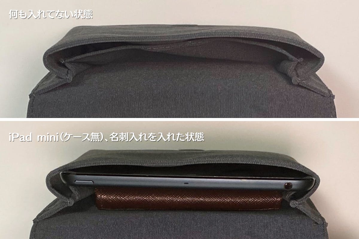 さらに内側にはミニ財布や名刺入れなどが重ならずに収納できるポケットも。(正面から見て上部にあります)