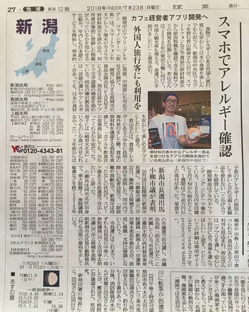 2018/07/23 09:19本日7/23の読売新聞新潟版に『スマホでアレルギー確認』という記事で今回のプロジェクトについて掲載頂きました! マスコミの方にもこのプロジェクトの意義を感じて頂き、取材頂けるということは非常に嬉しいことです。ありがとうございました。 パトロンの皆さまのおかげて支援額が目標の50%に達しました。残り半分のご支援を頂けるよう頑張っていきますので、引き続き応援のほどよろしくお願い致します。 もっと見る