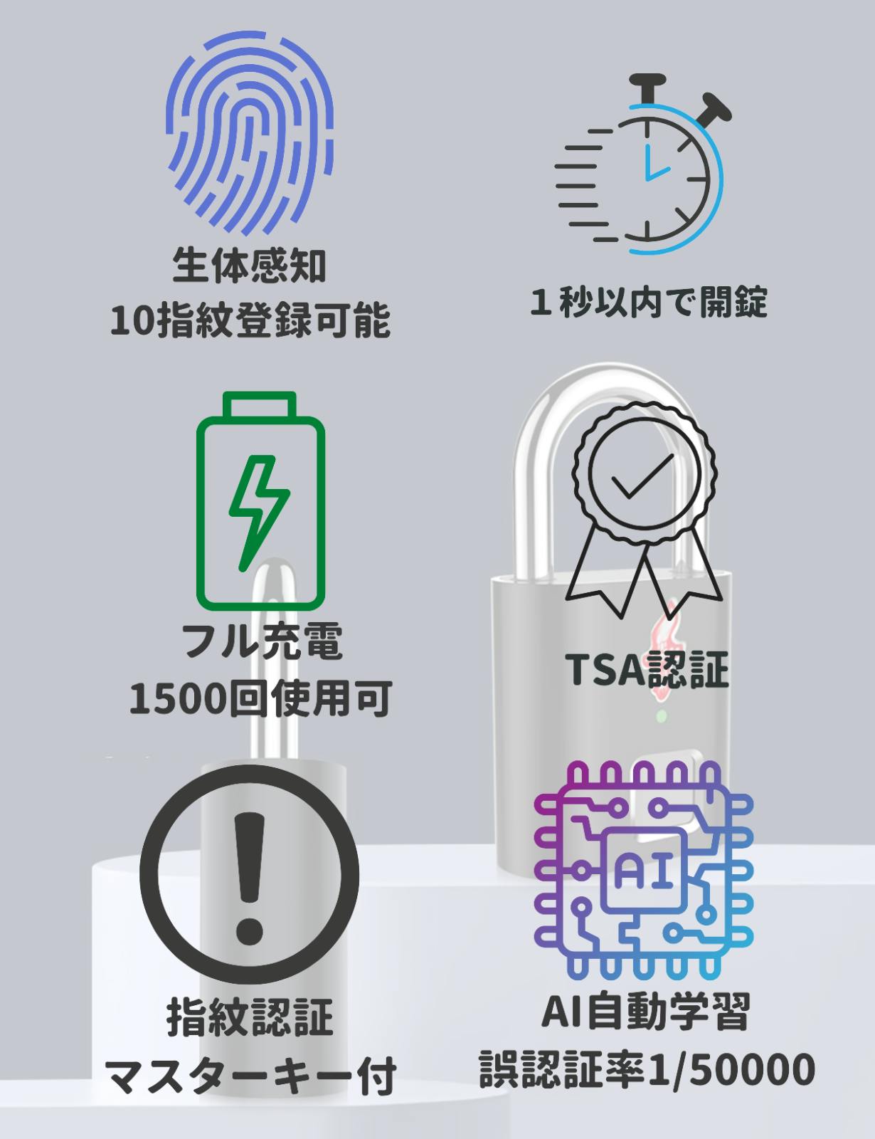 内容:南京錠本体・USBケーブル・指紋認証マスターキー・日本語取扱説明書