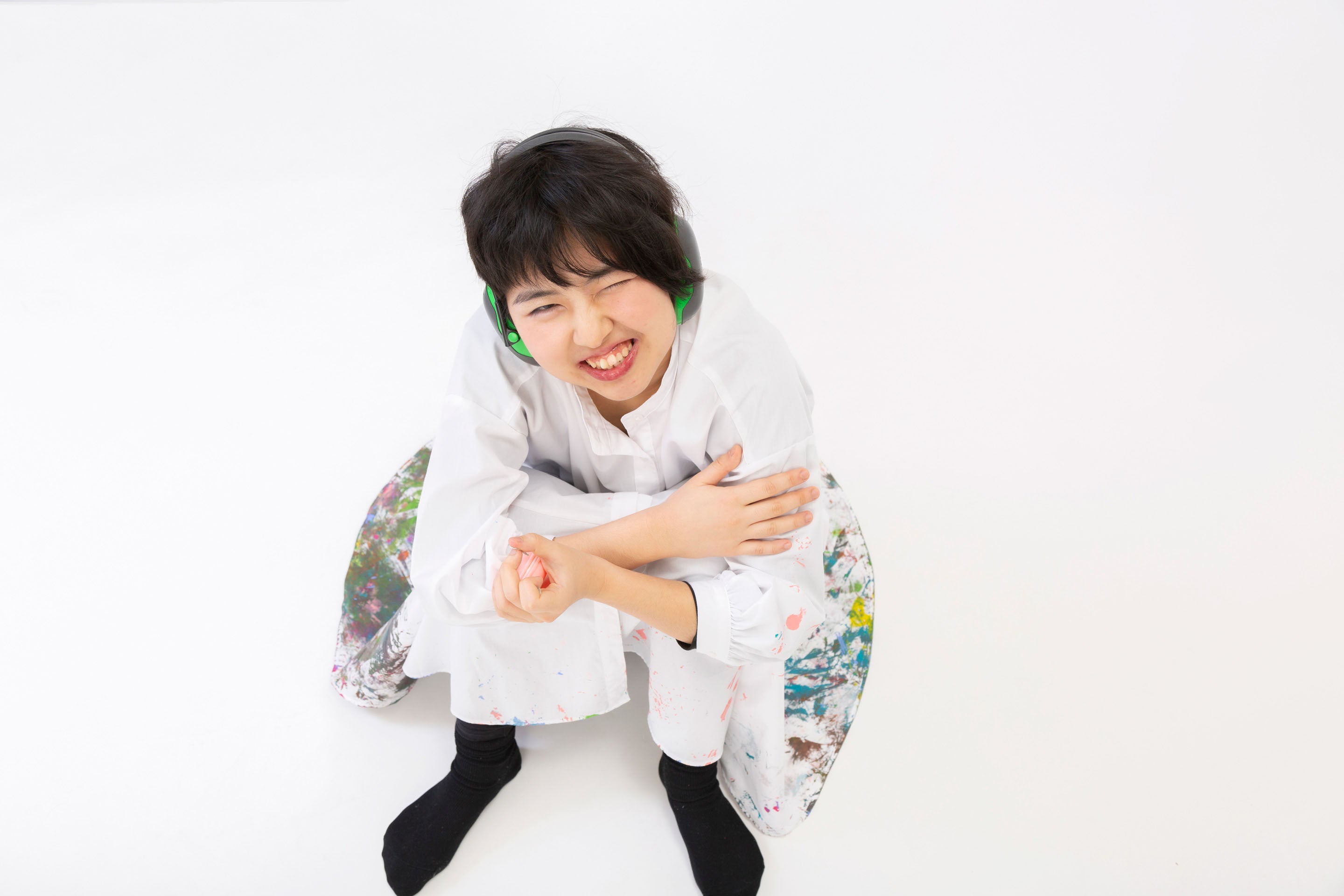 これまで、マルやシカク、サンカクなどのシンプルなモチーフを描いていた彼女を、アートが新しい世界へと広く繋いでくれました。