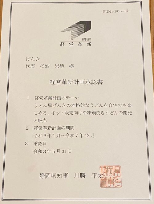 コロナ禍で経営の救いとなり、多くの方にげんきのうどんを知っていただくこととなった「冷凍鍋焼きうどん」の製造再開すること。